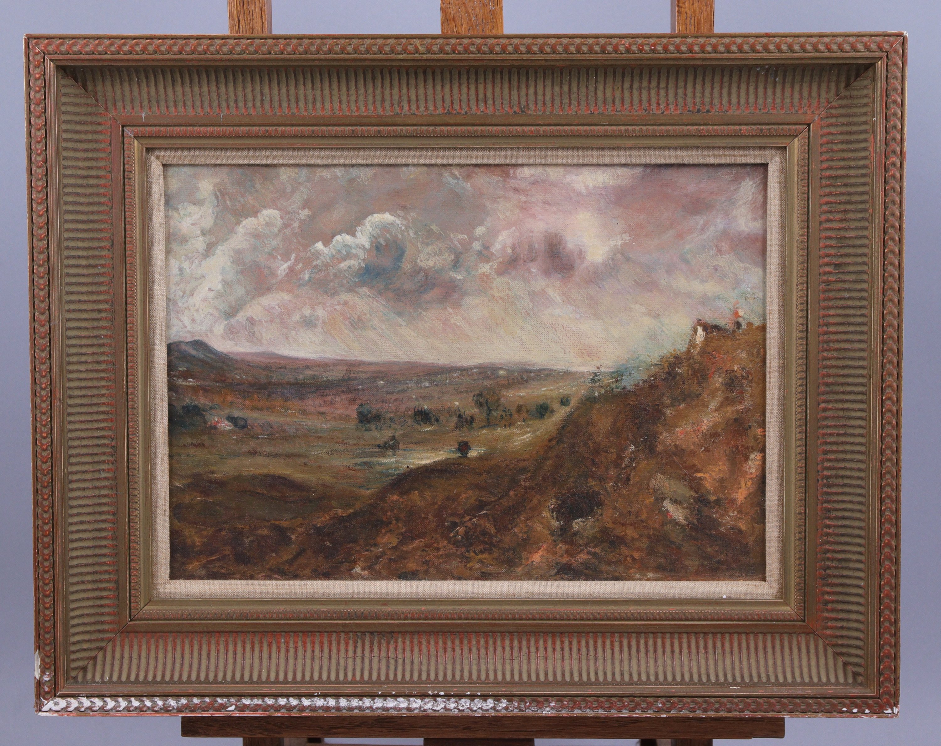 - Attribué à Amélie Sauger (Française, -1951), Paysage. Toile. Marquée à l'encre au dos "A.Sauger / n°212". Haut. 23,2 Larg. 33 cm. Cadre en bois doré à décor de godrons (Haut. 35 Larg. 45 cm).