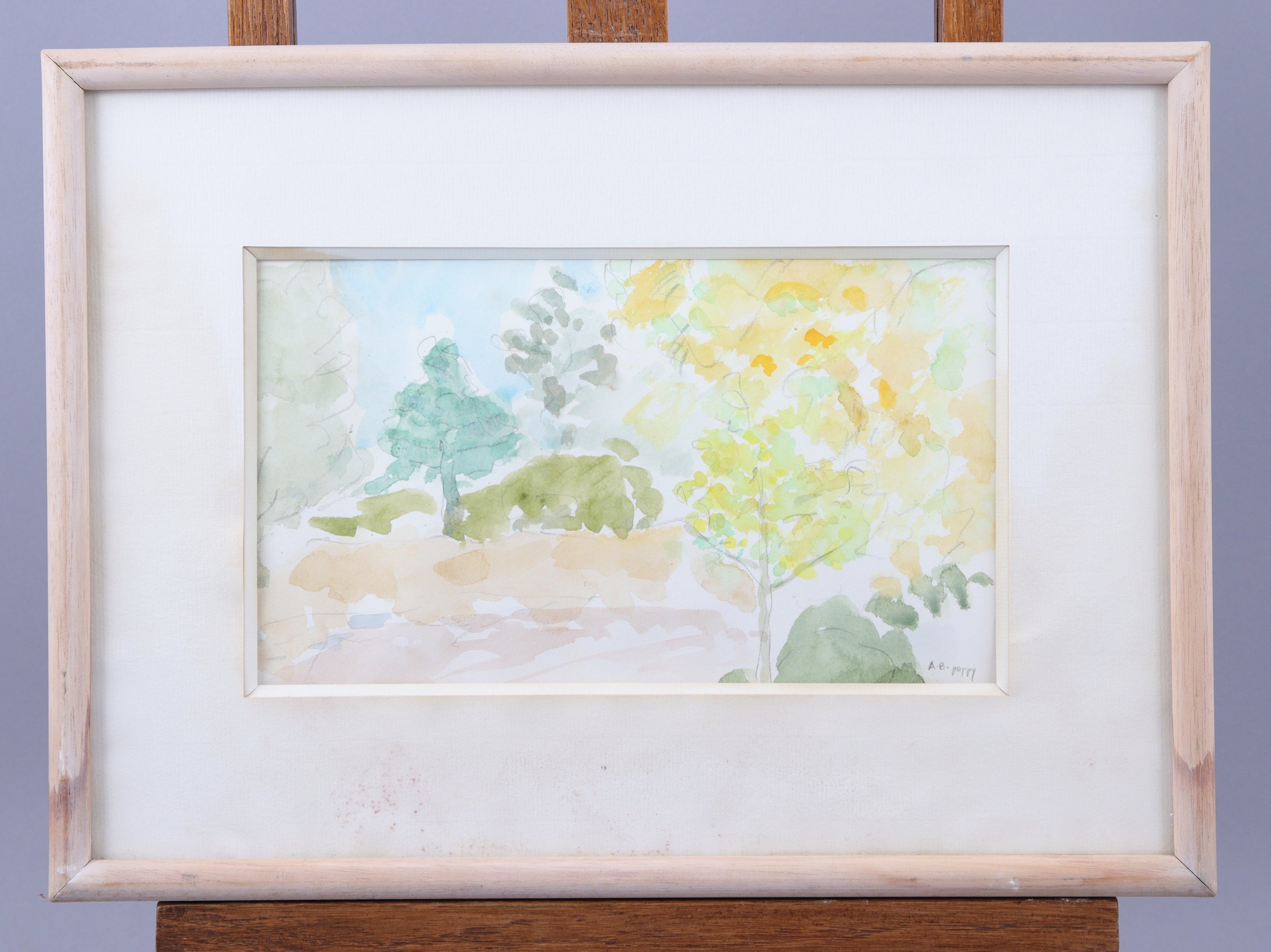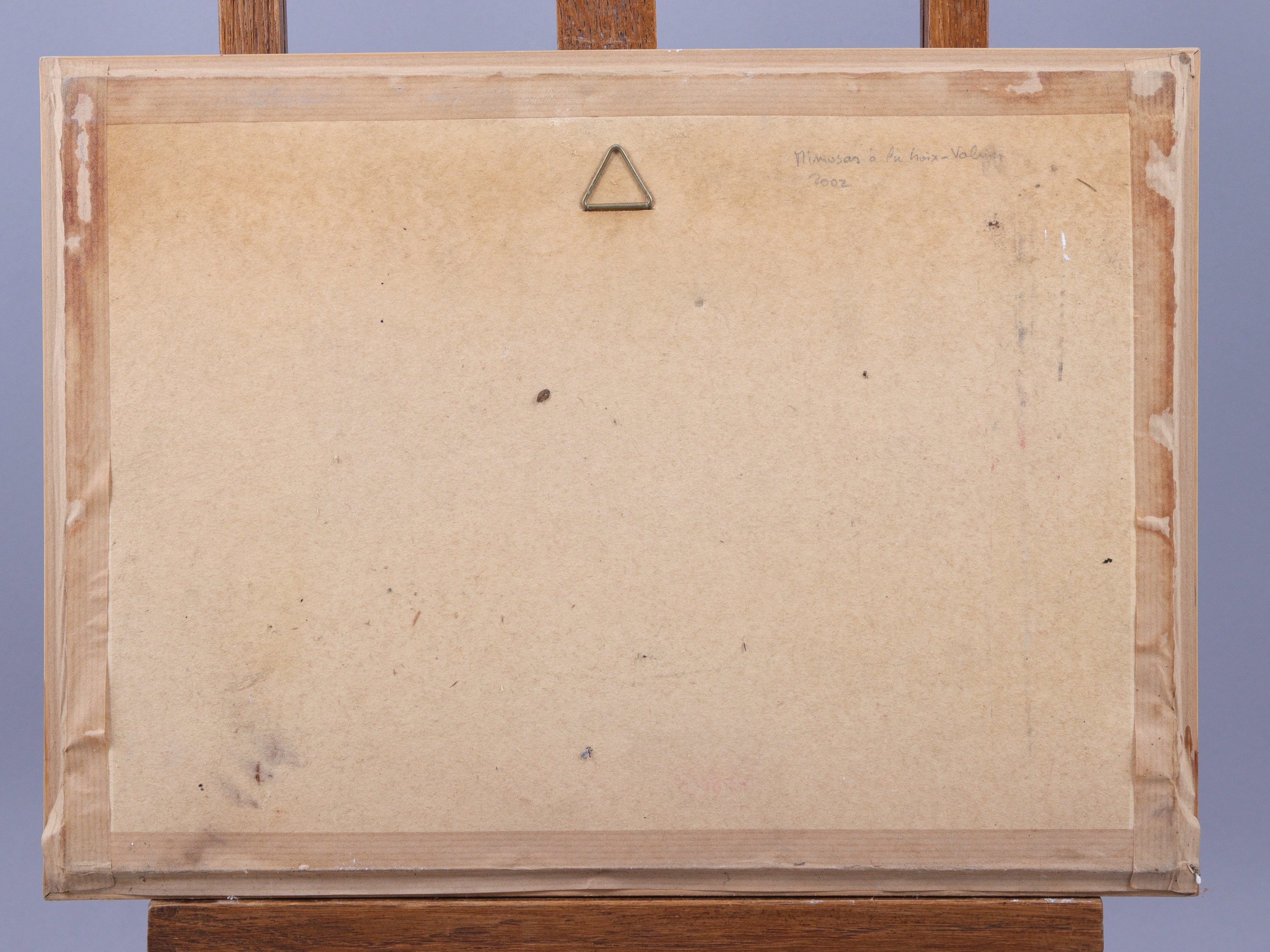 - Ecole du XXIe siècle, "Mimosas à la Croix-Valmer", 2002. Aquarelle. Signée en bas à droite et titrée au dos. Haut. 15 Larg. 26 cm (à vue). (traces d'humidité). Cadre à baguettes en bois (Haut. 28 Larg. 38,5 cm).