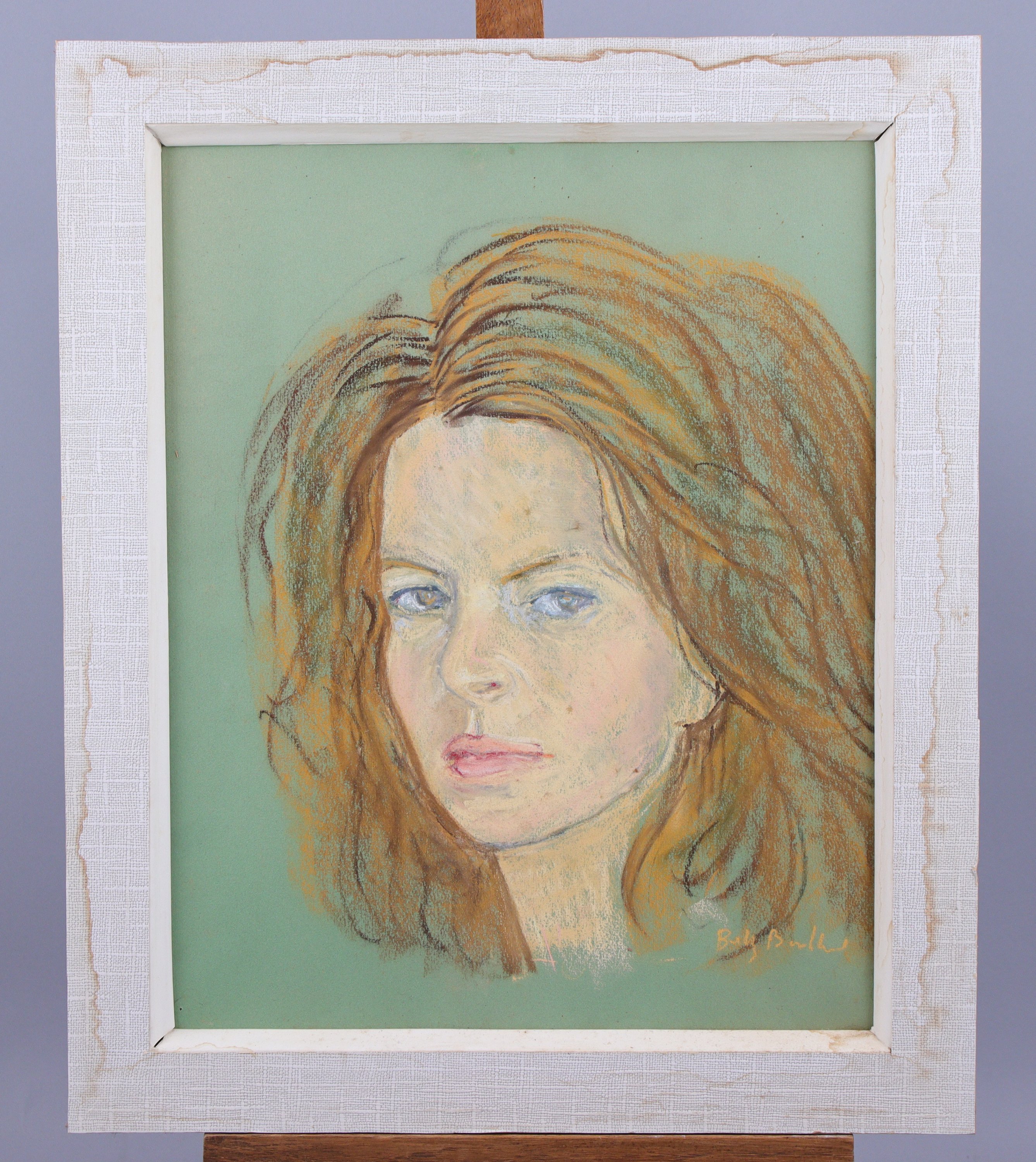 - Ecole moderne, Portrait de jeune femme. Pastel. Haut. 44 Larg. 36 cm.