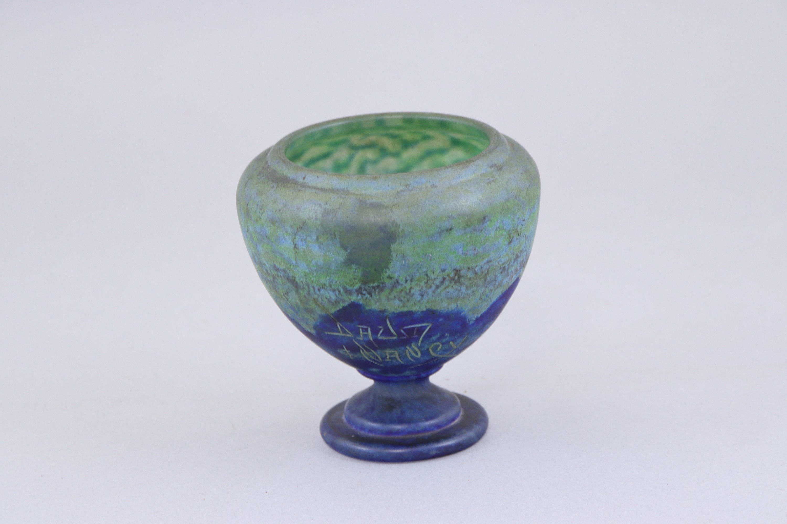en verre multicouche vert et bleu reposant sur un piédouche.