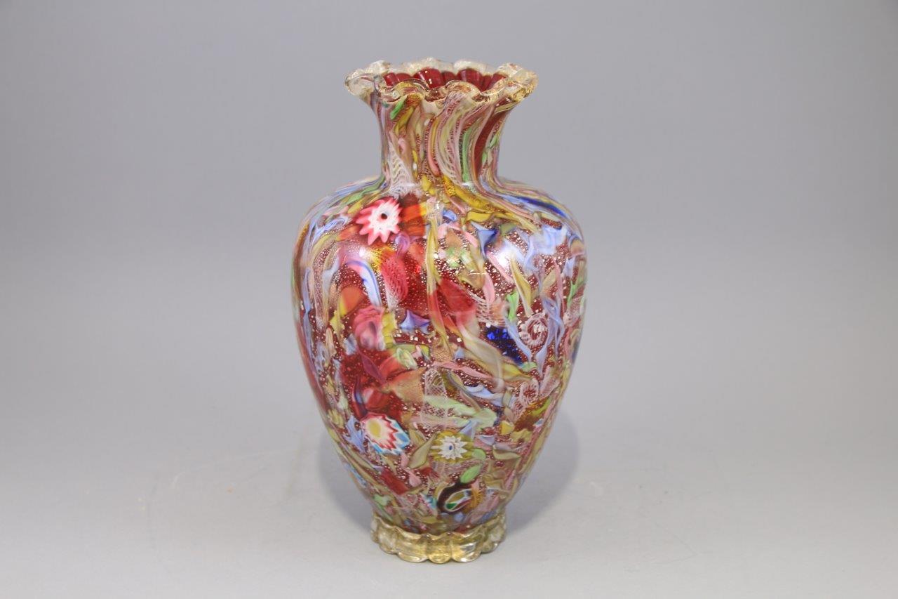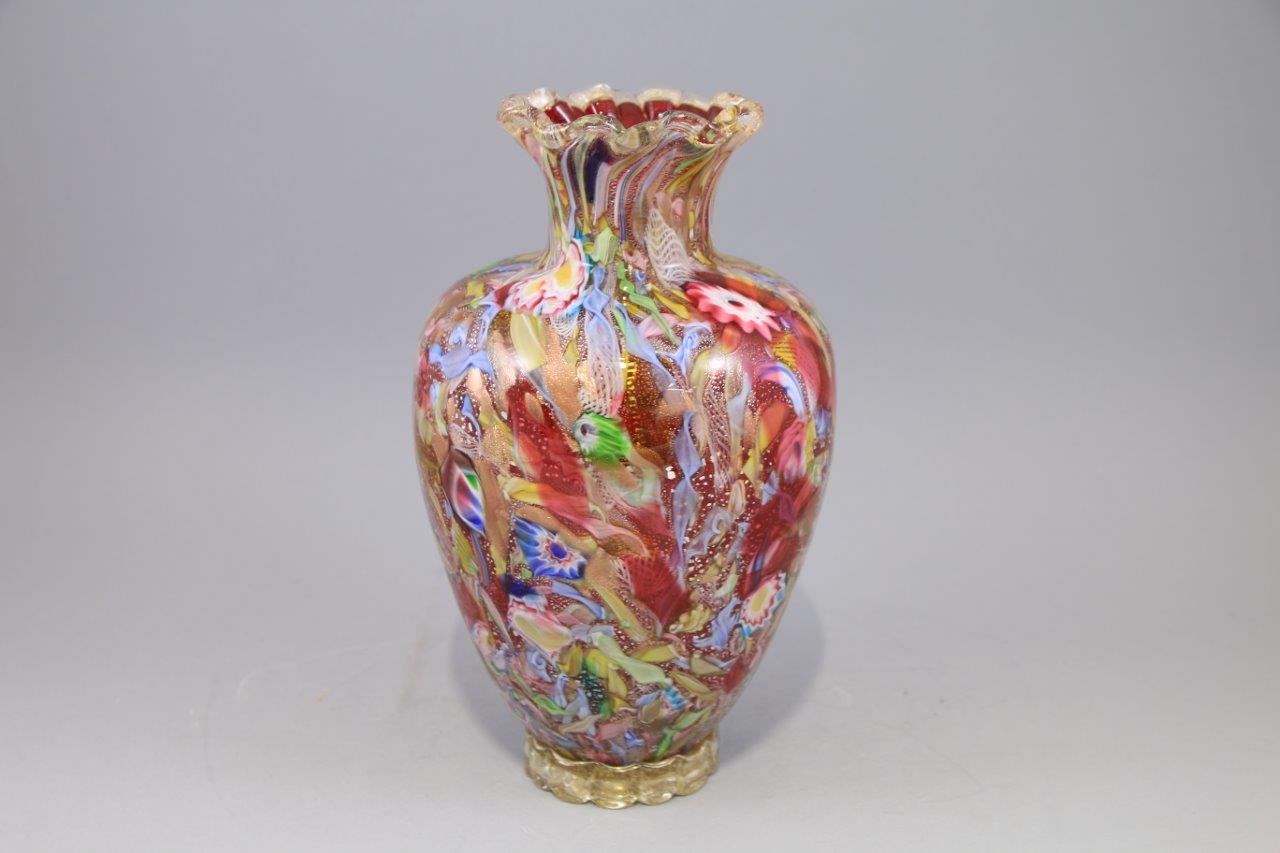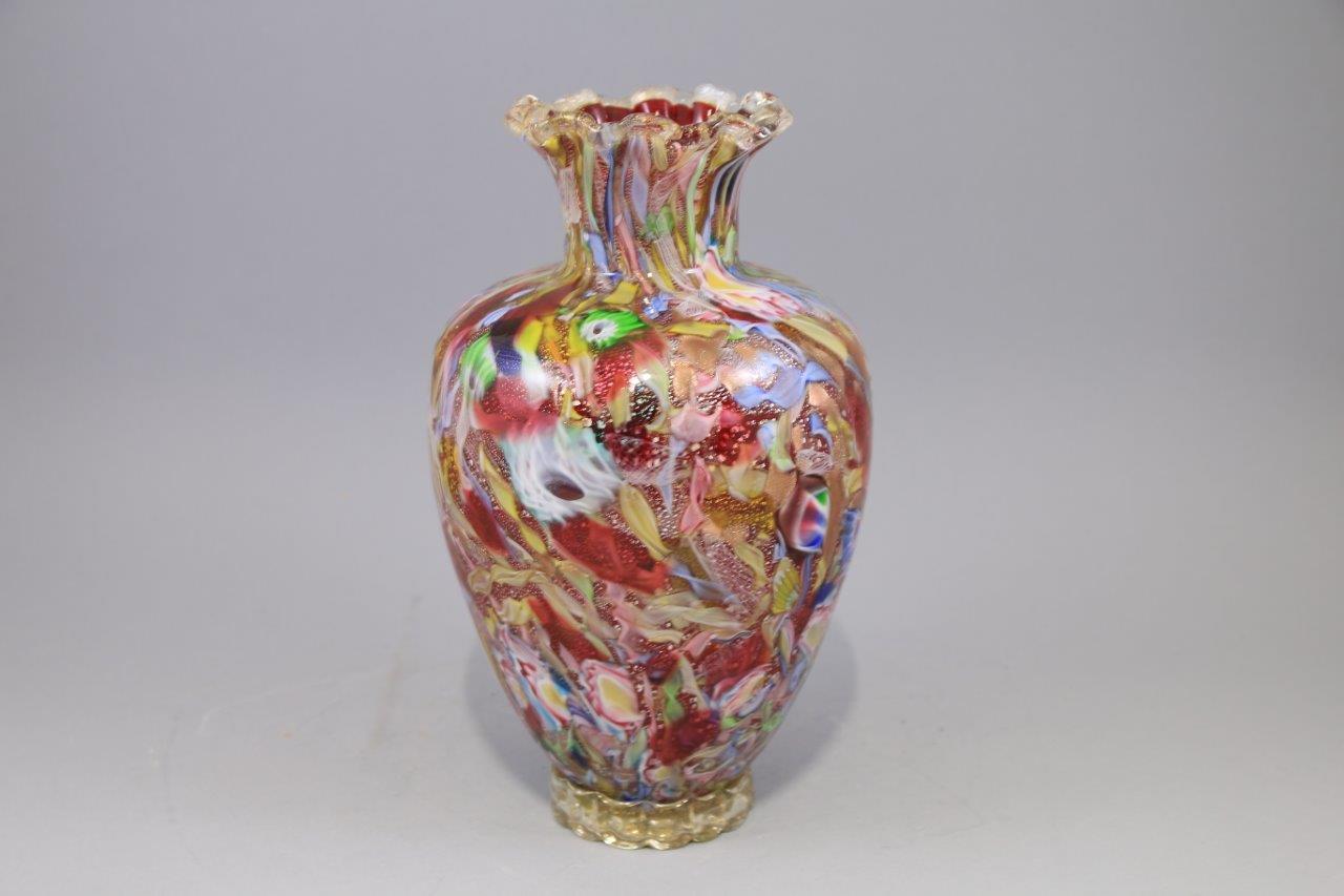 en verre multicouche à fond rose paillé d'argent et de mika.