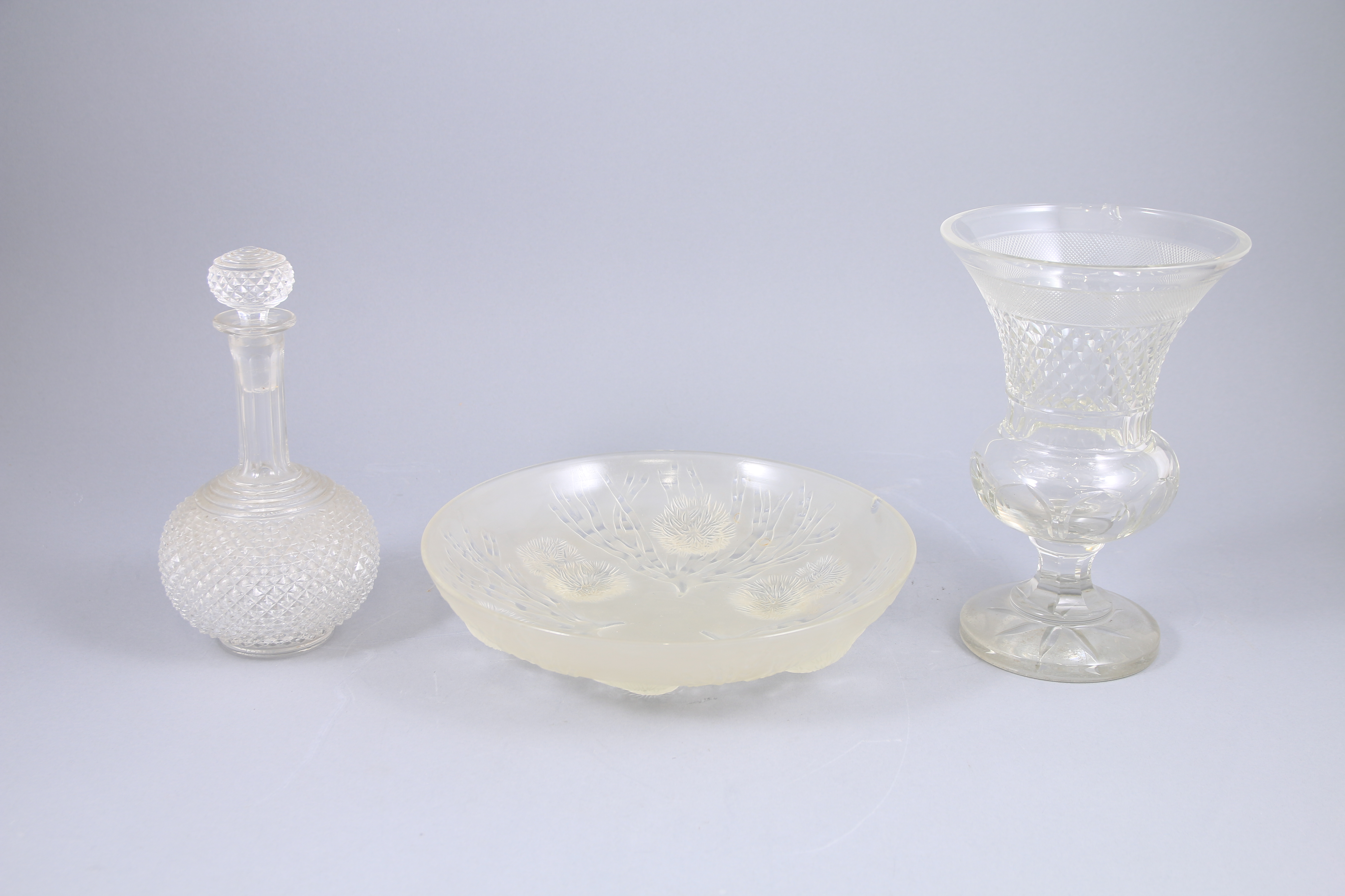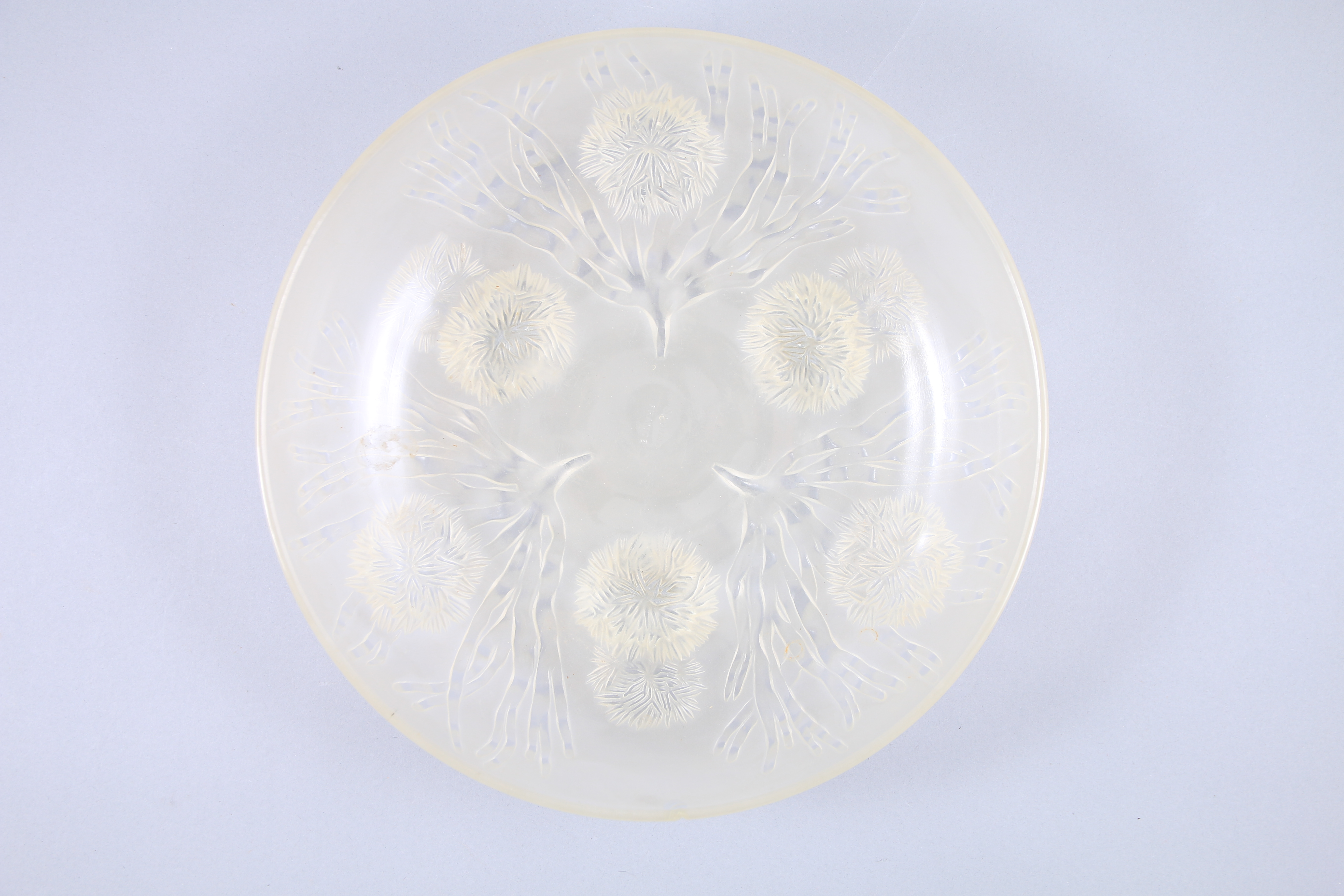 - Sabino, grande coupe aux boules de gui. En verre moulé pressé avec cachet de la manufacture "Sabino France". Haut. 7,5 Diam. 30,5 cm. (éclats)