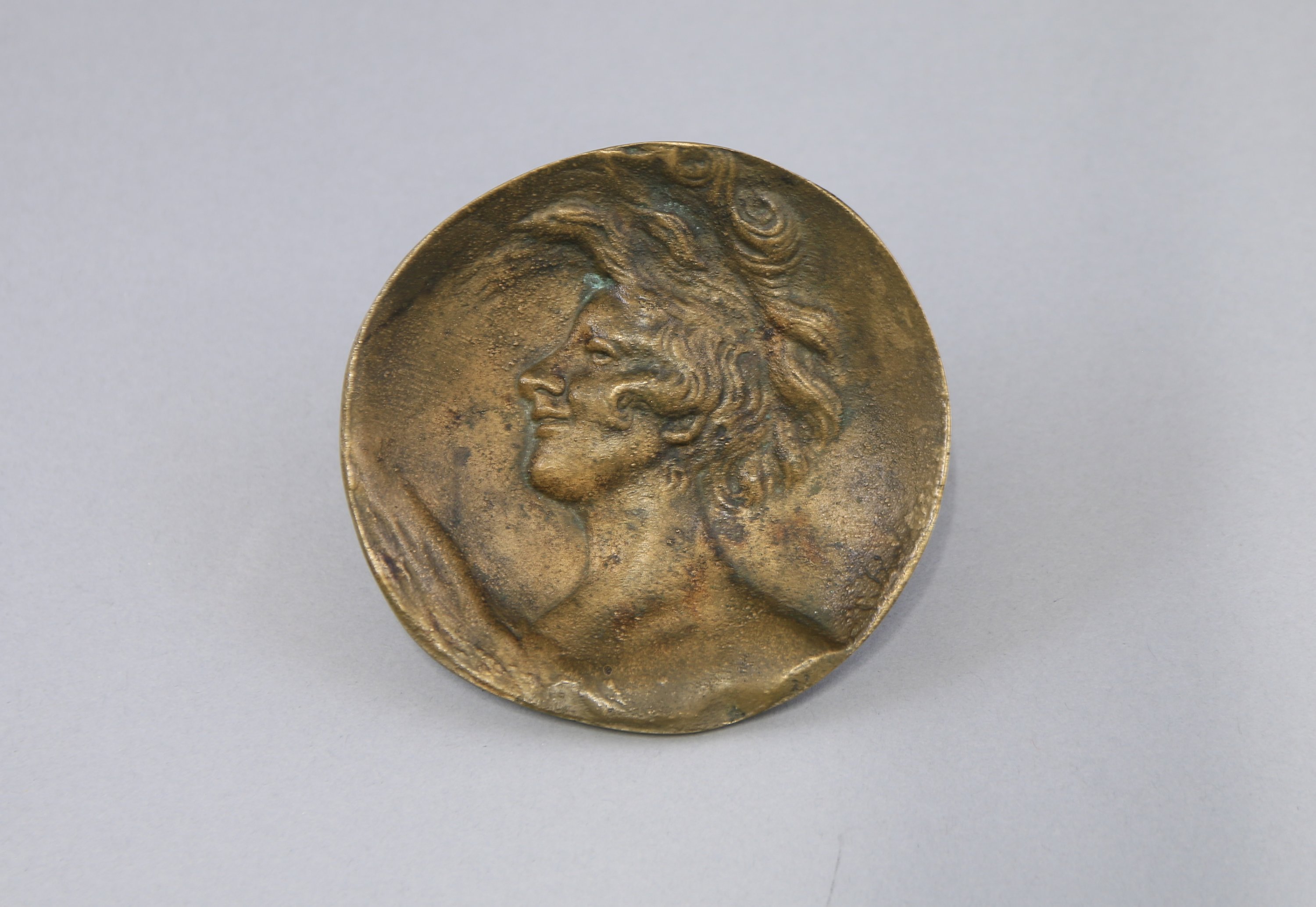 en bronze au portrait de femme de profil.