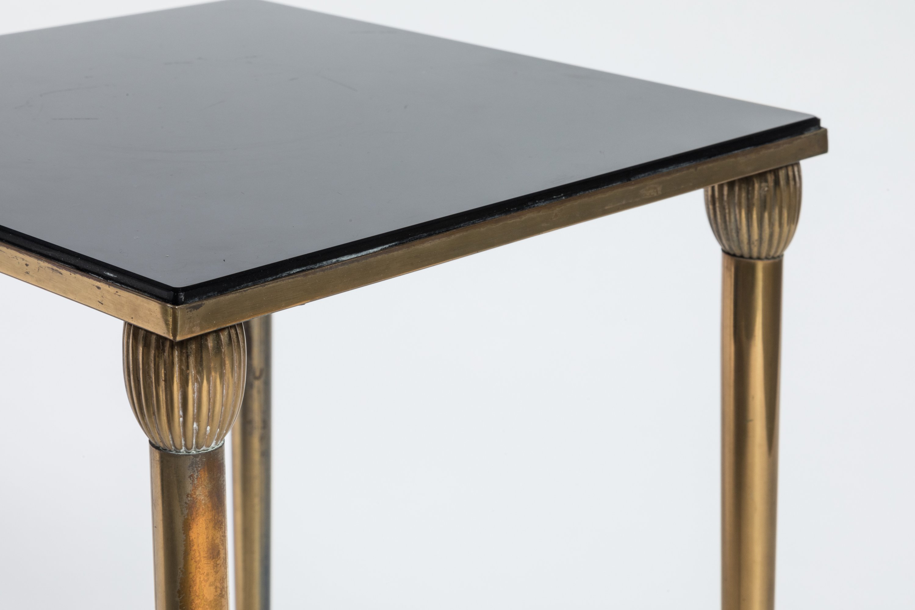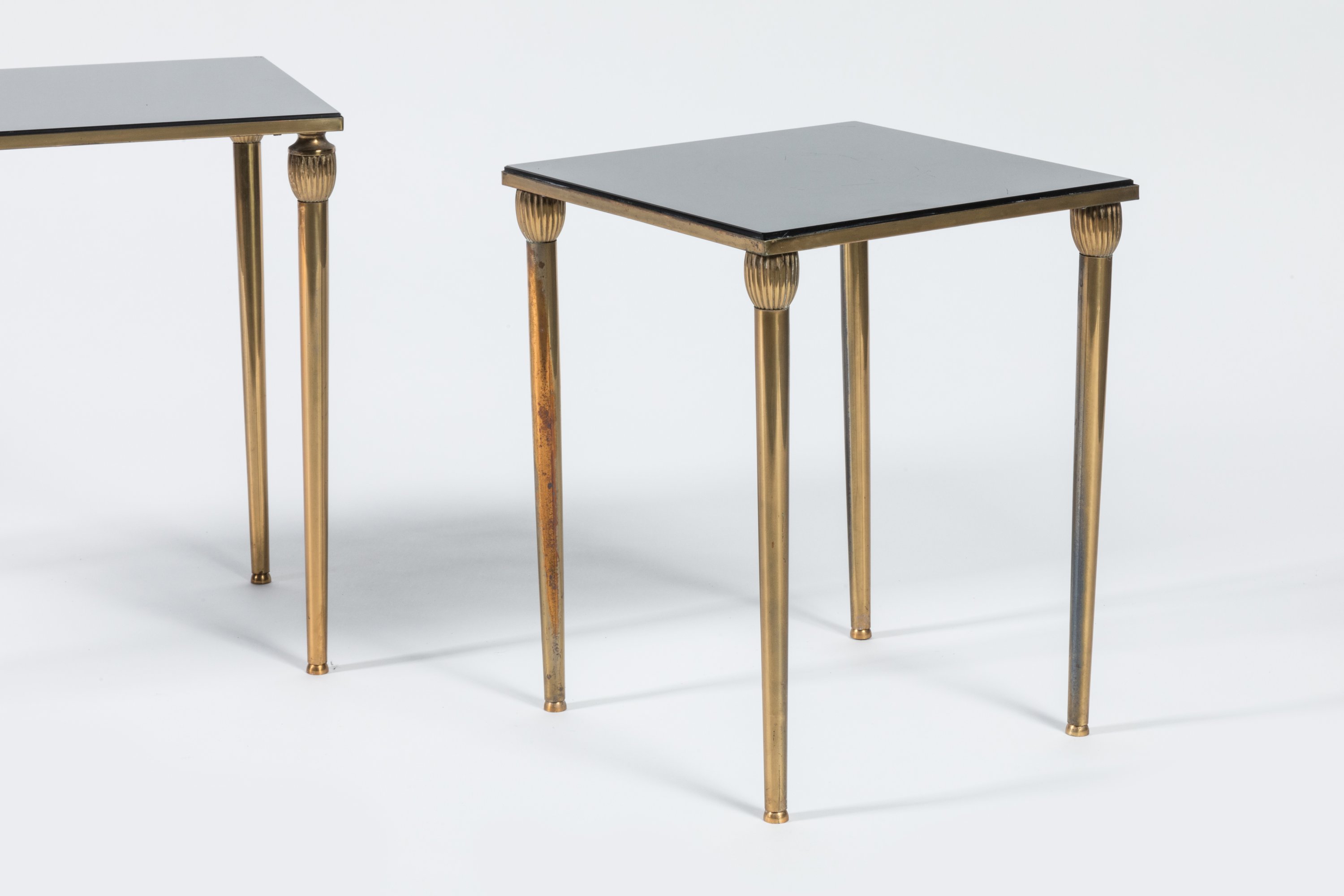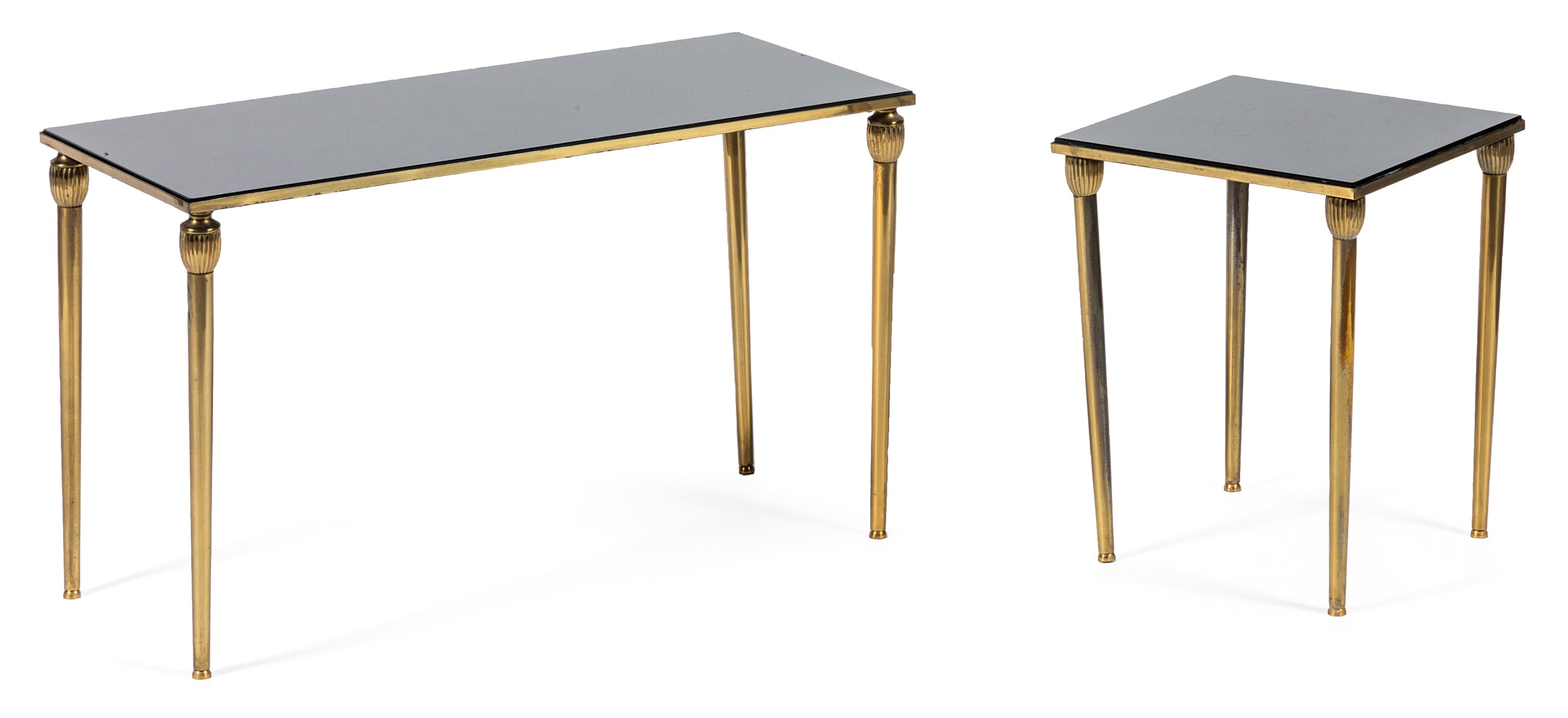 en laiton, l'un de forme rectangulaire, l'autre carré. Ils reposent chacun sur des pieds fuselés coiffés de godrons.