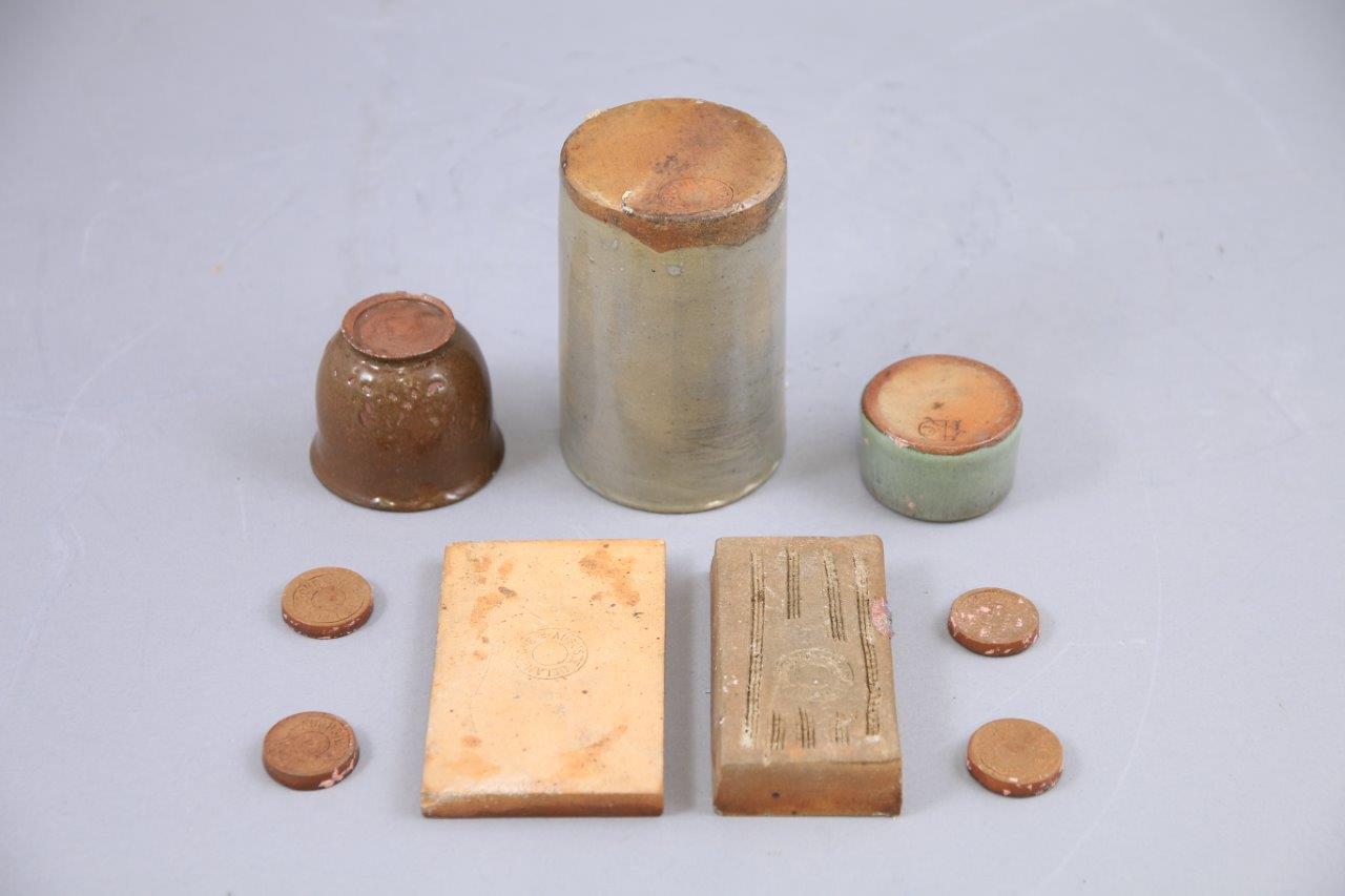 Deux plaques, deux vases, quatre pastilles et un encrier