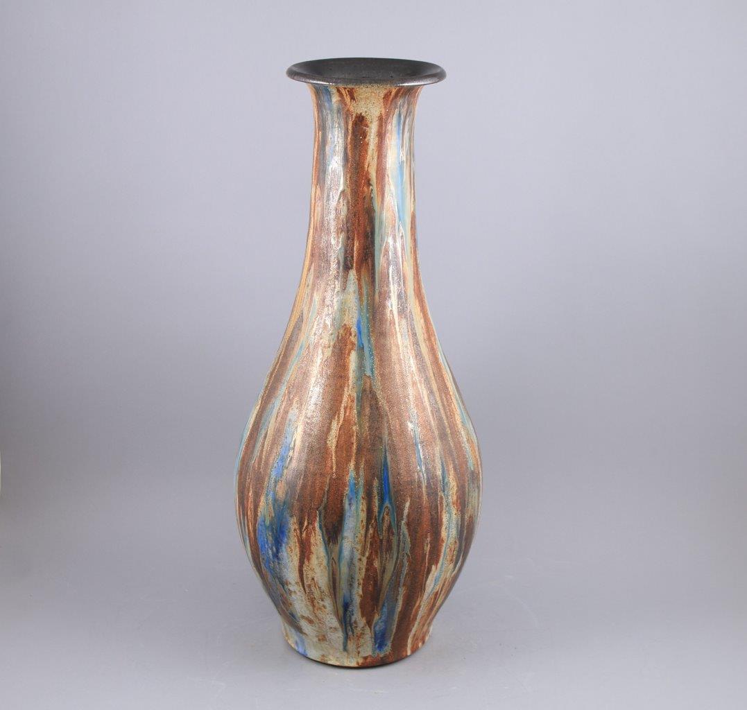 en grès, à décor de coulures polychromes.