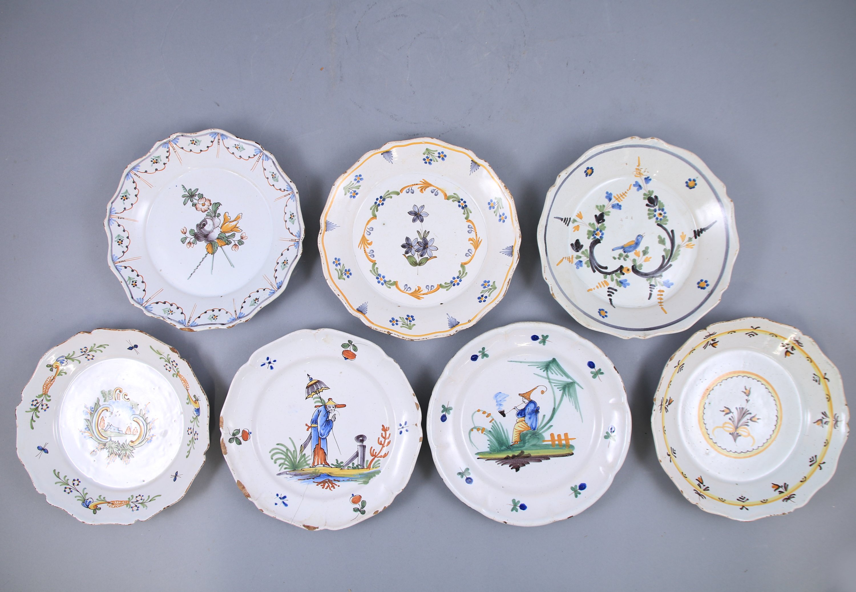 en faïence, dont deux "aux chinois", certaines à décor d'oiseaux, de motifs floraux ou de paysages.