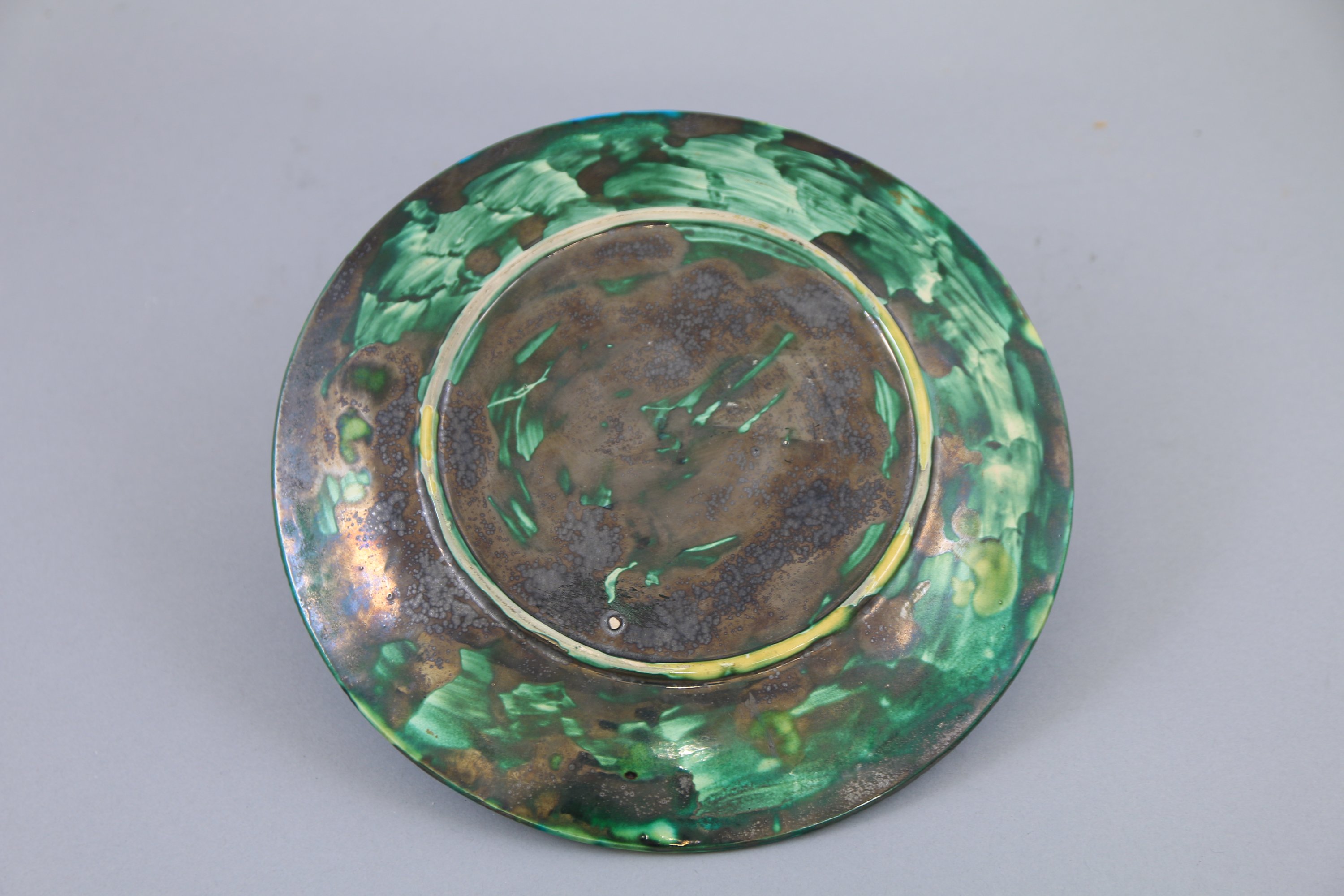 en faïence polychrome à décor d'un oiseau sur fond bleu.