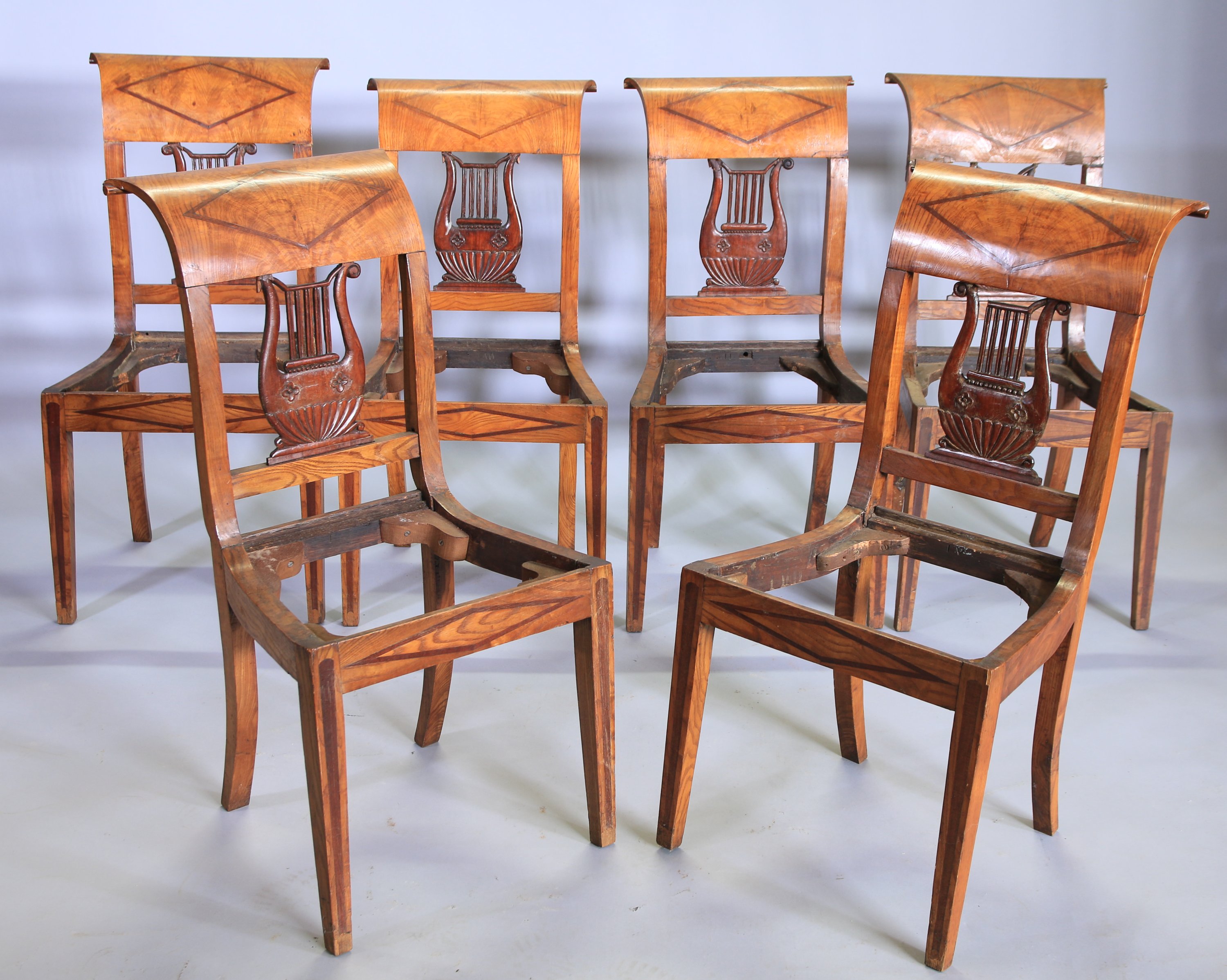 en acajou et placage d'acajou. Le dossier ajouré en lyre est décoré en son sommet d'un filet de palissandre formant un losange, se terminant en crosse. La ceinture est également décorée d'un filet de palissandre formant un losange. Elles reposent sur quatre pieds, les antérieurs en gaine et les postérieurs en sabre.