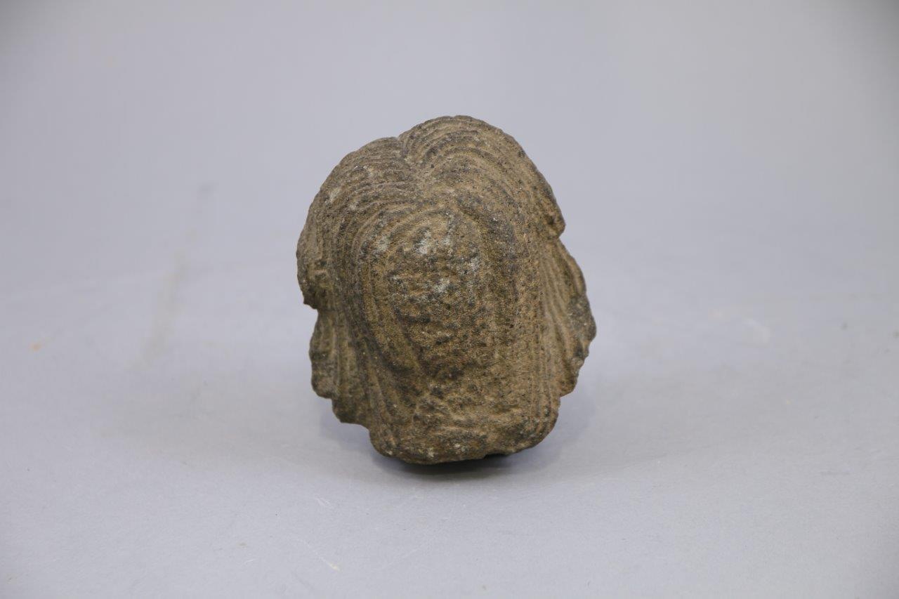 Partie supérieure d’une figure de saint Jean de Calvaire ou d’un ange en granit.