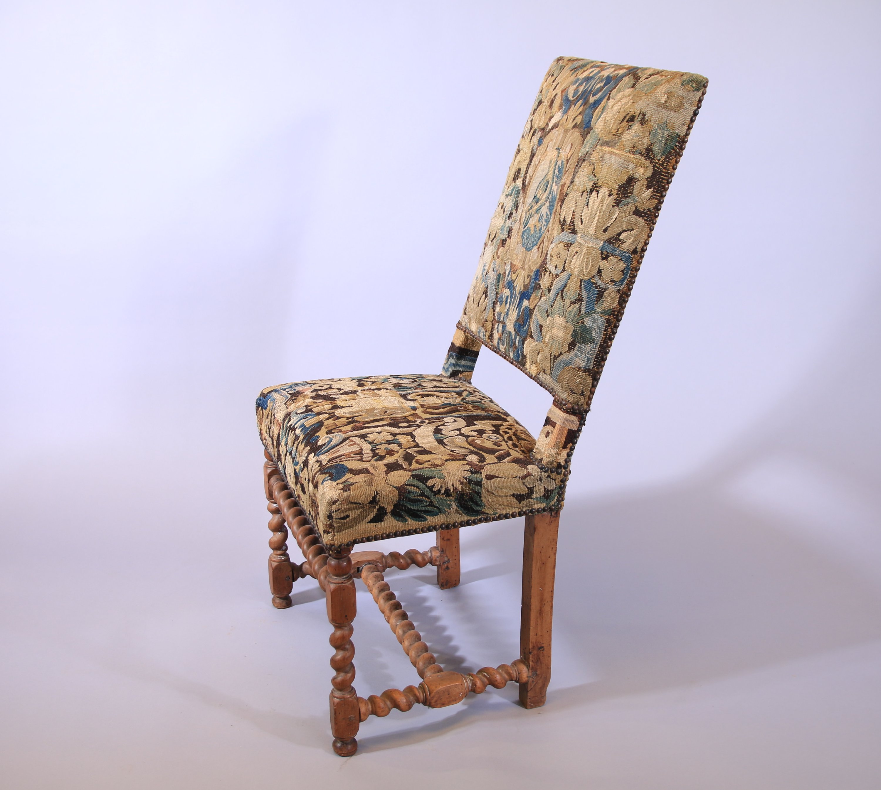 en bois tourné, piétements torses reliés par une entretoise en H également torsadée.