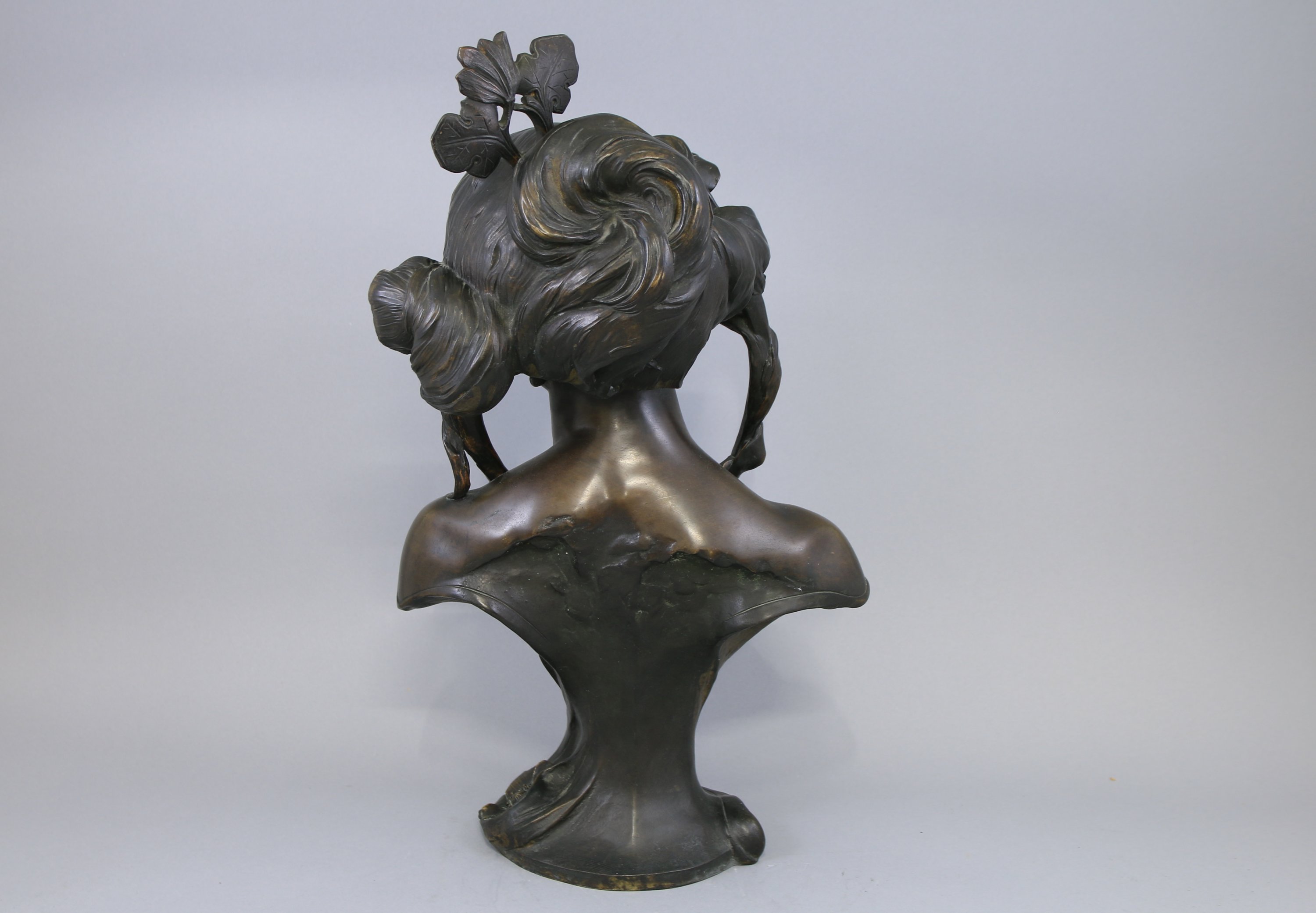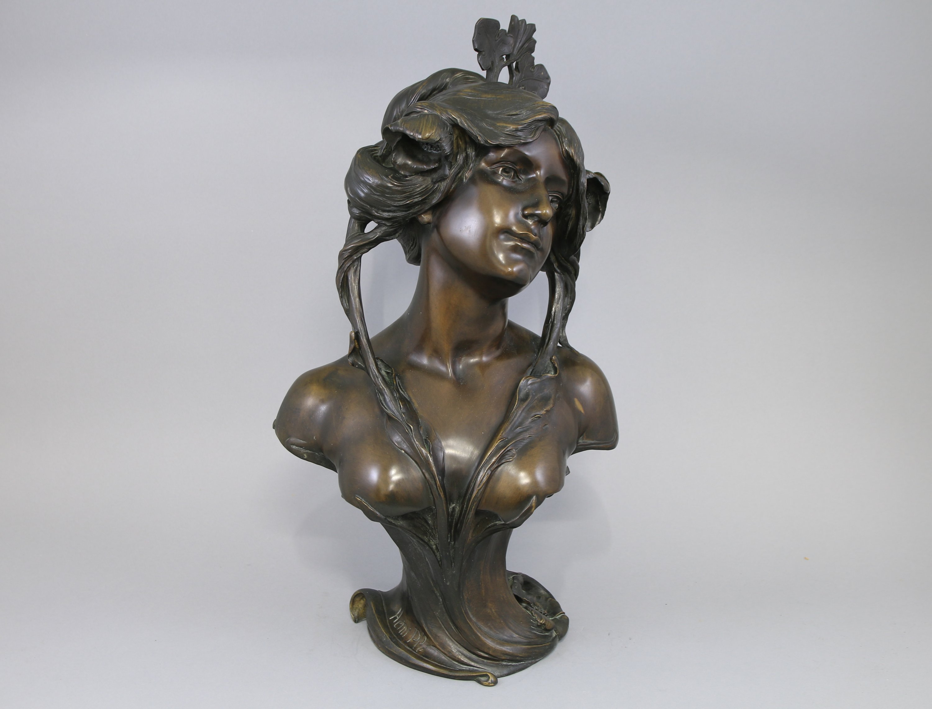 L'oeuvre d'Henri Plé est plurielle, offrant une diversité de sujets s'inscrivant dans le goût de la IIIe République en général et de l'Art nouveau en particulier. Ici, il offre un buste de femme à la coiffure parée de fleurs et feuilles se prolongeant sur un pied mouvementé. Cette oeuvre n'est pas sans rappeler "La Nature" de son confrère Alfons Mucha, créée entre 1899 et 1900.