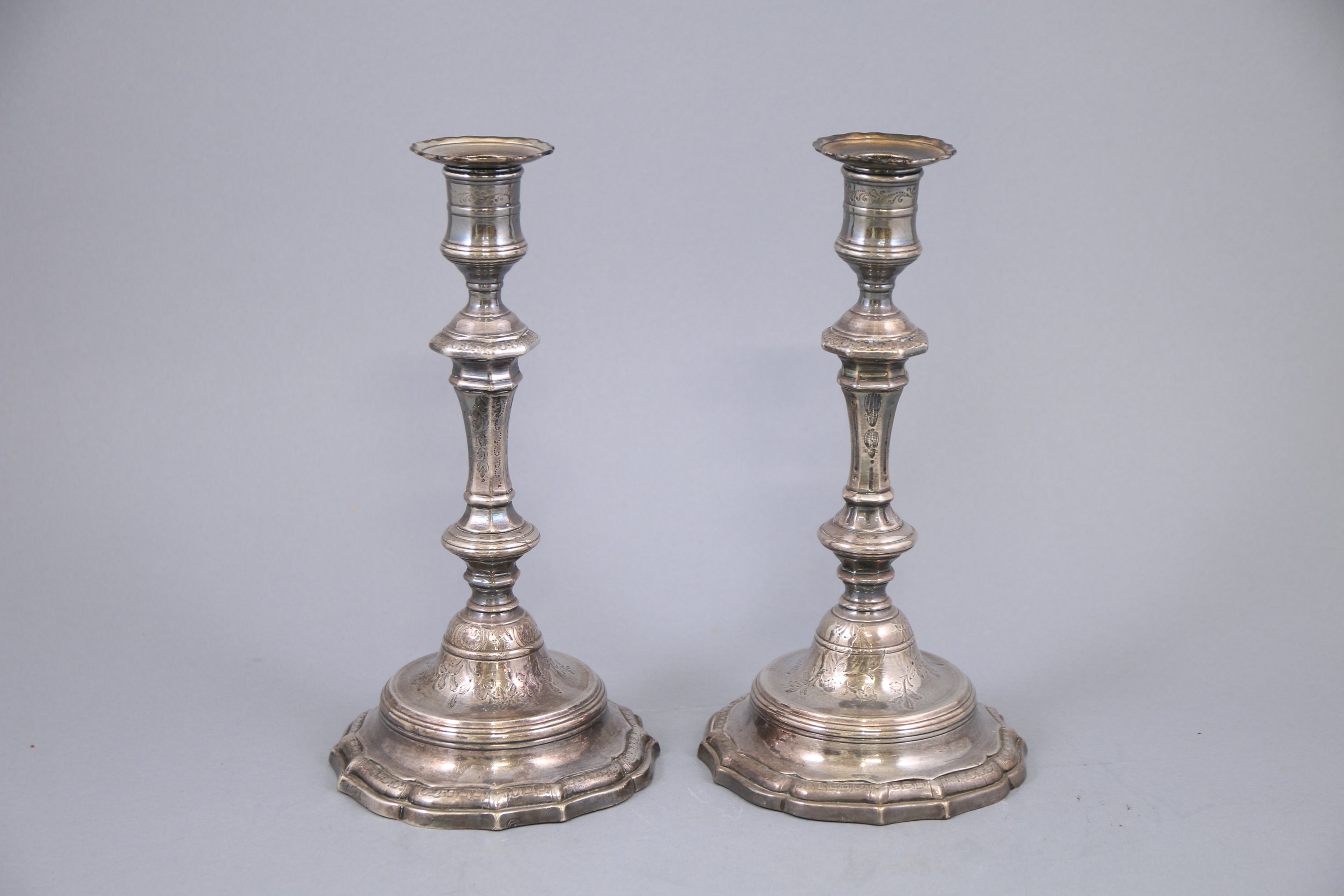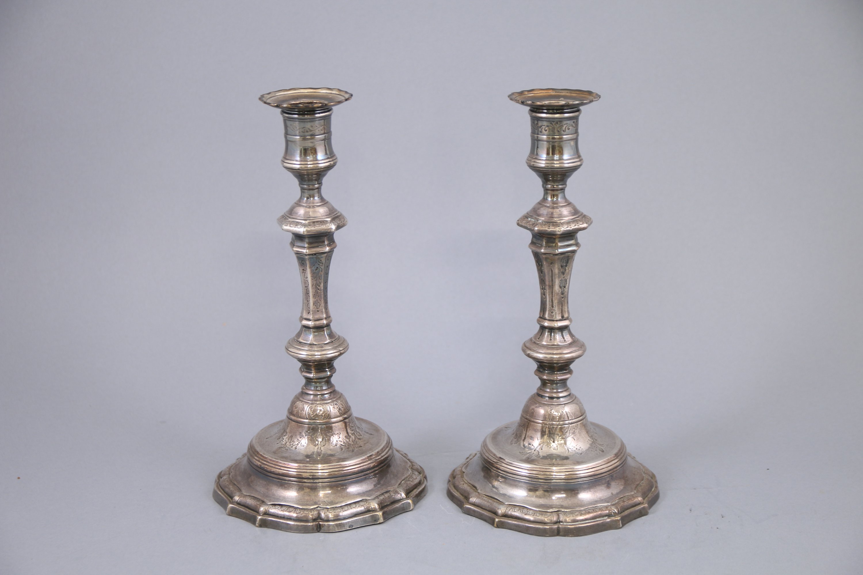 en bronze argenté, la base mouvementée, le corps gravé de fleurs et feuillages.