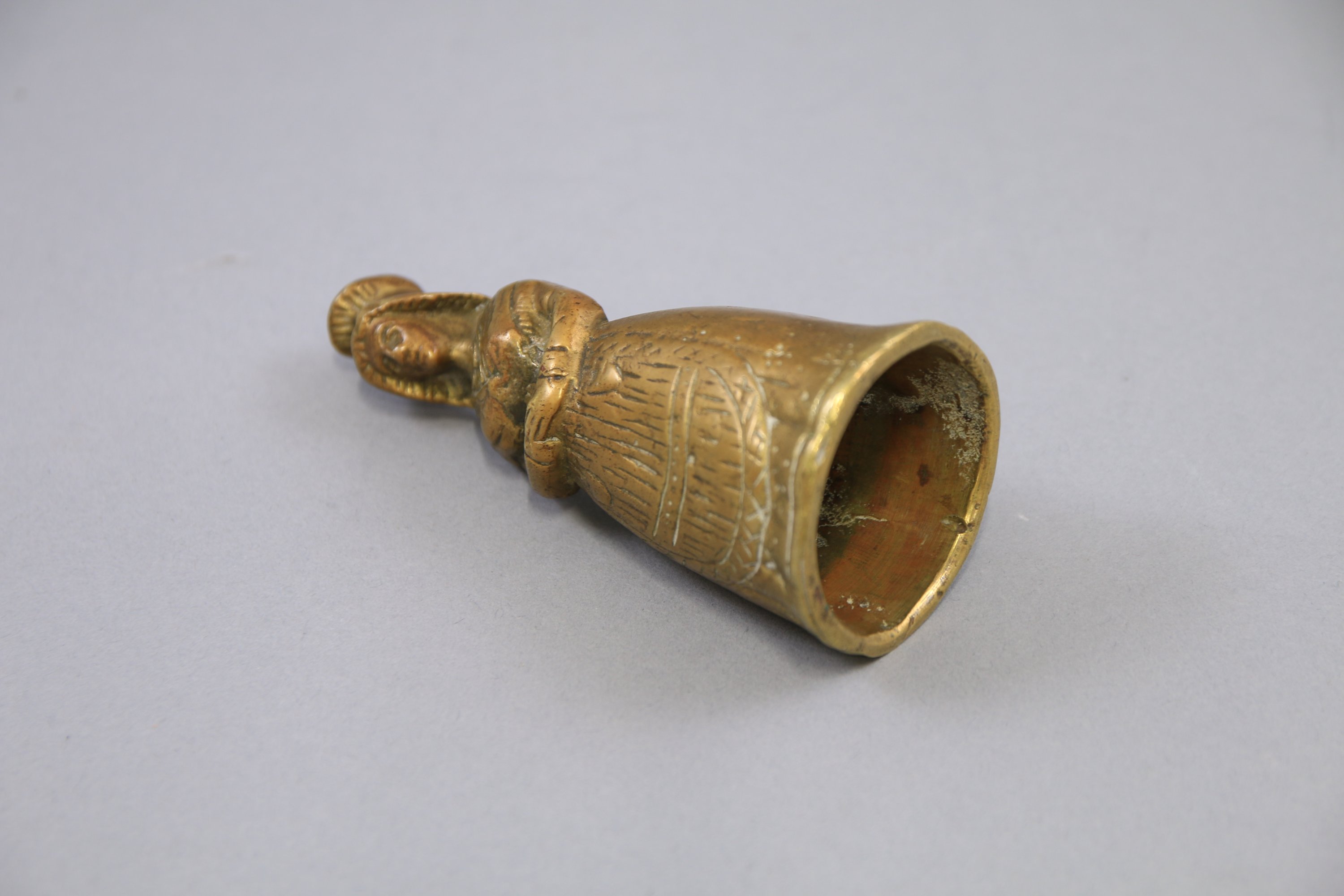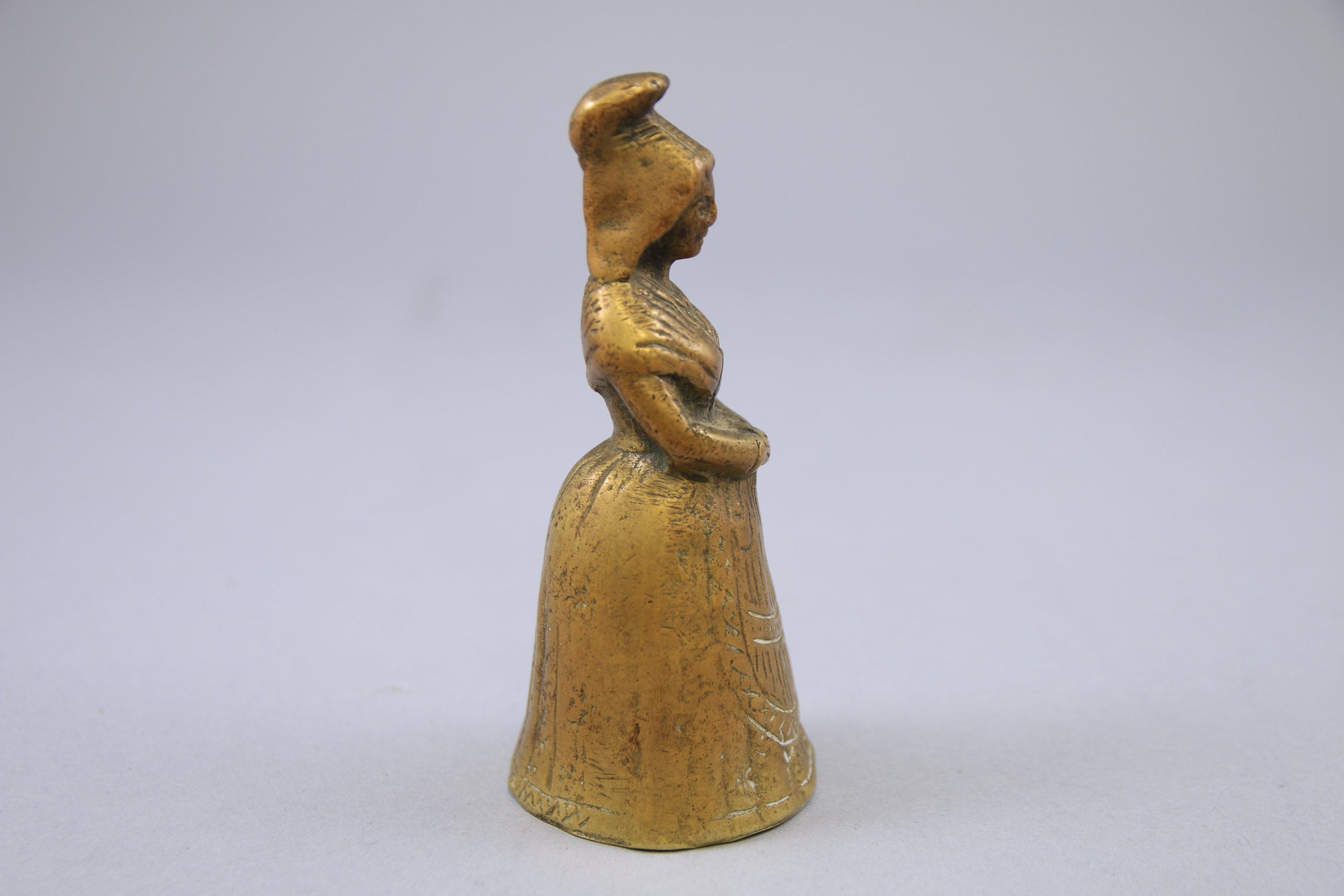 Joint : Cloche en forme de femme au tablier en bronze. Haut. 11,5 cm.