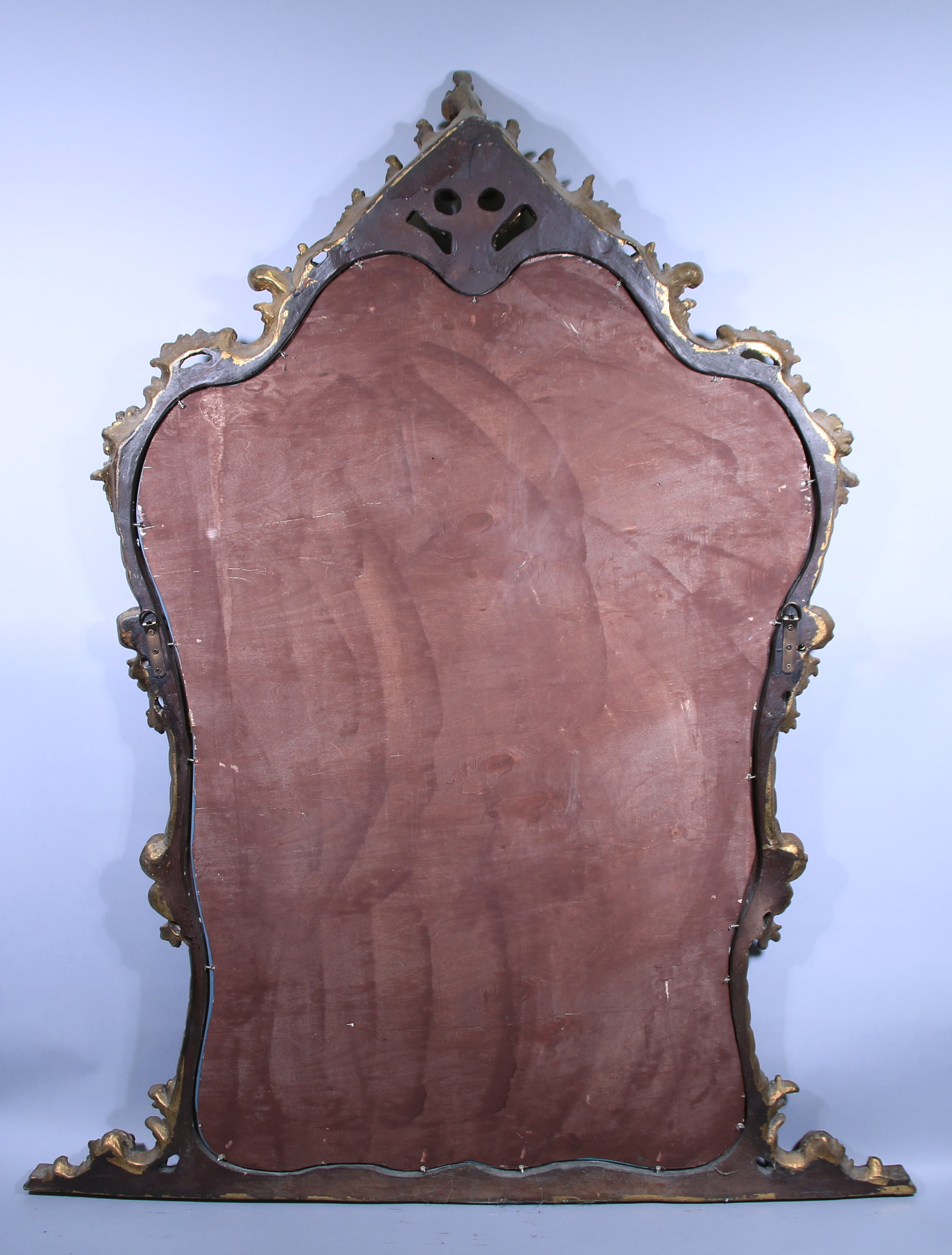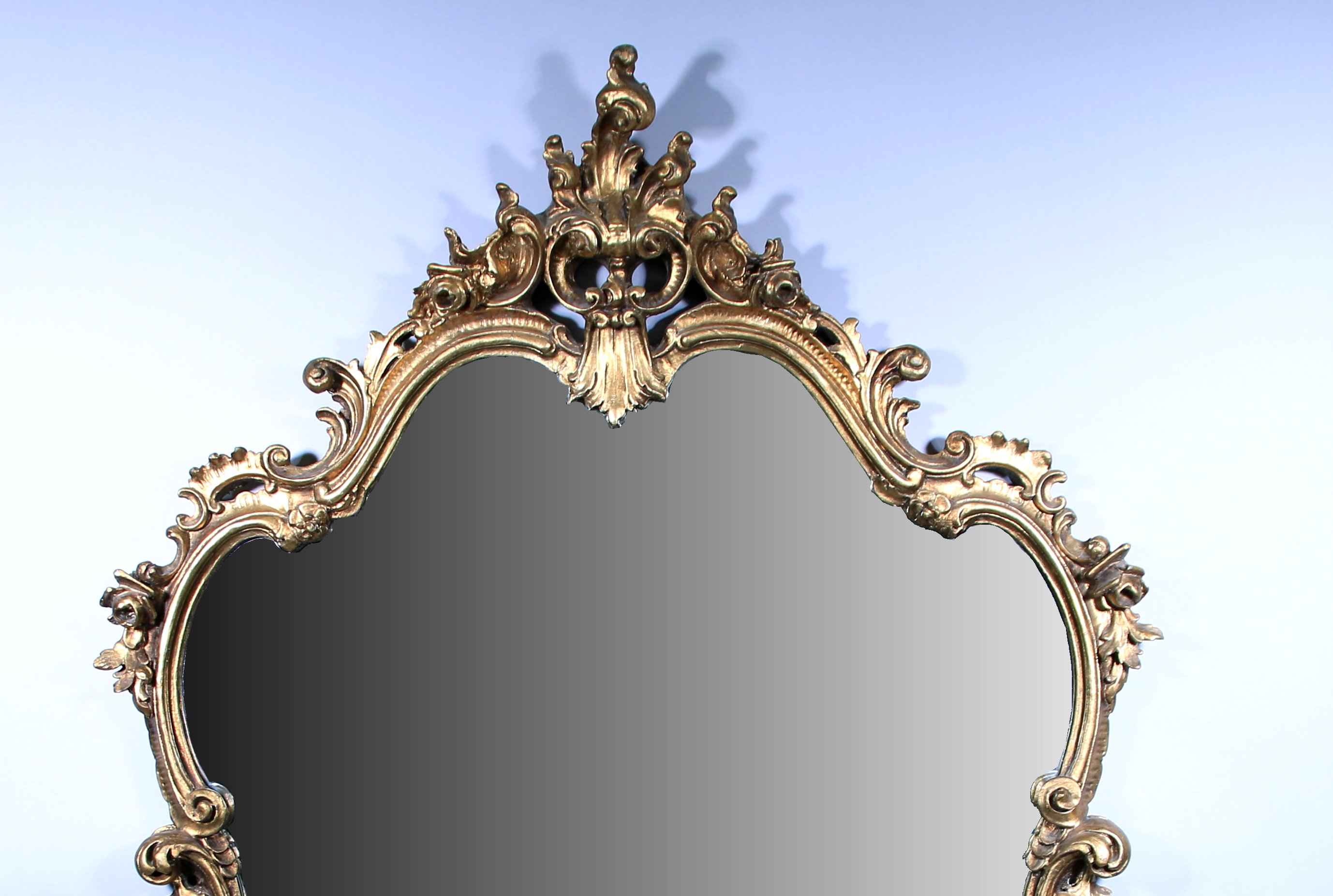 en bois sculpté et doré. La partie supérieure ornée d'une agrafe terminée par une feuille d'acanthe se prolongeant sur l'épaulement jusqu'à la base formée de moulure.