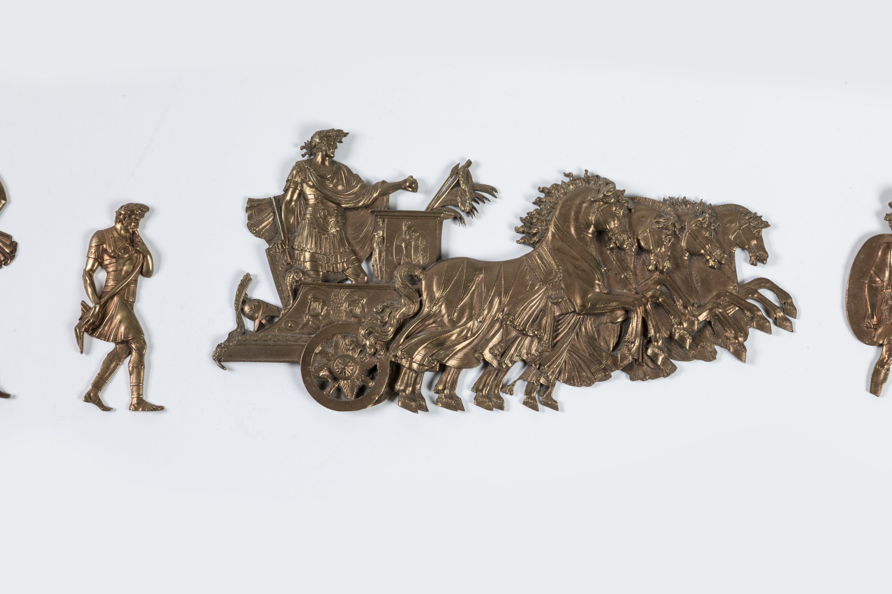 Pierre-Philippe Thomire, ca. 1806. A set of 6 bronze bas reliefs depicting Trajan's triumph. Model used for bronze mounts for console tables furnishing the Fontainebleau apartments of French Empress Joséphine or Anatole Demidoff's fireplace.