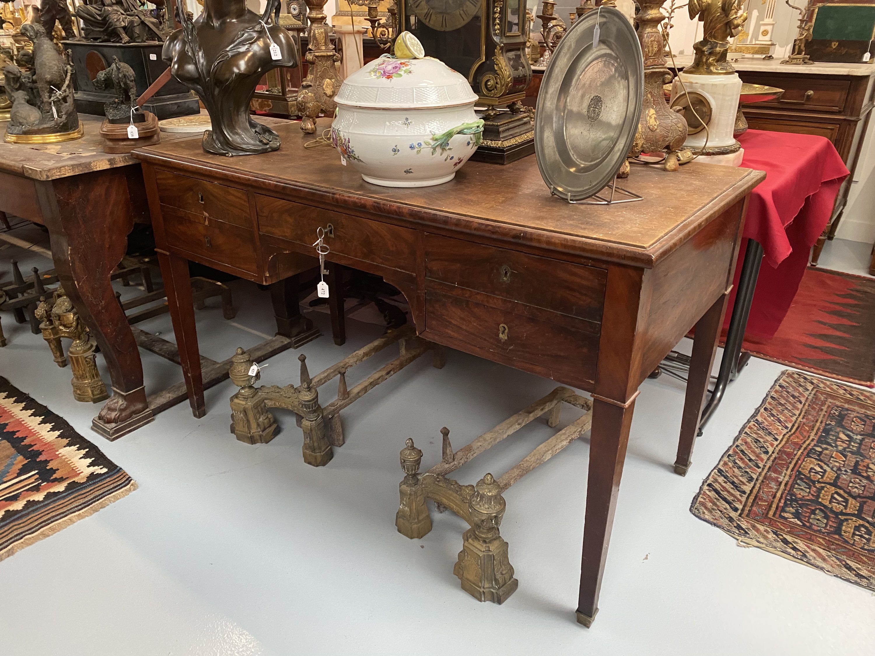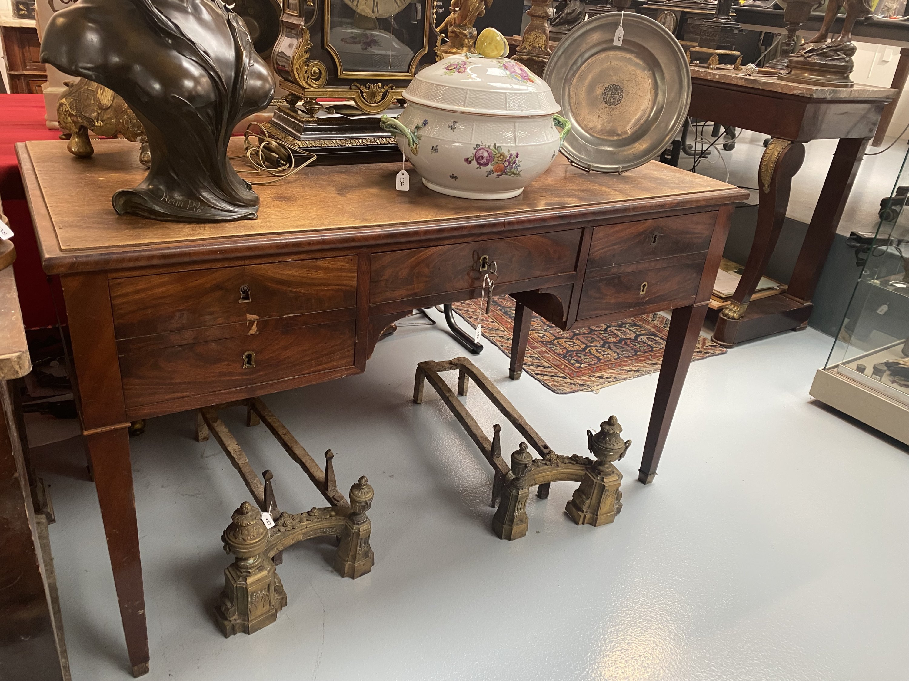à caissons en placage d'acajou ouvrant par quatre tiroirs. Il repose sur quatre pieds gaines.