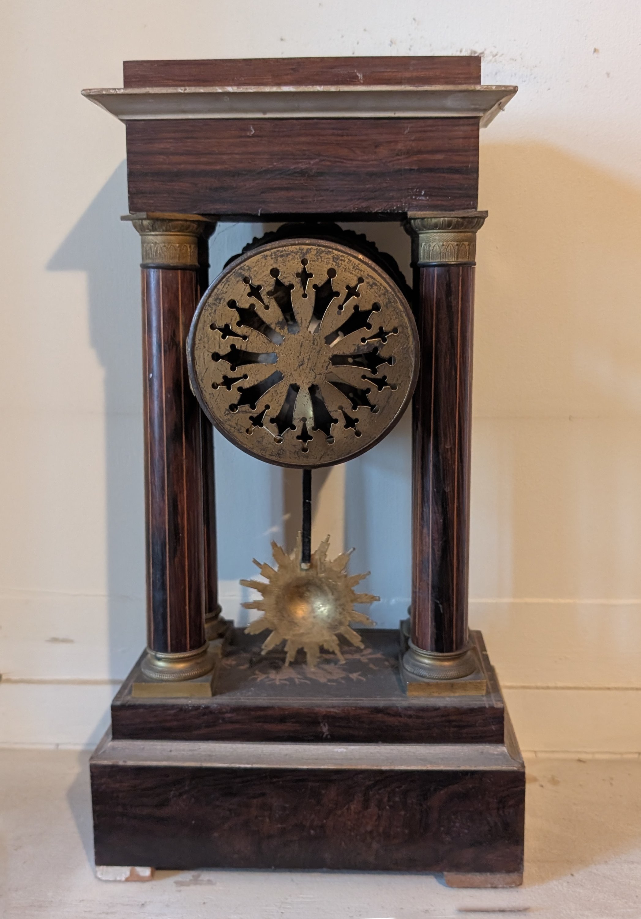 En forme de temple, les quatre colonnes reposent sur une base rectangulaire.