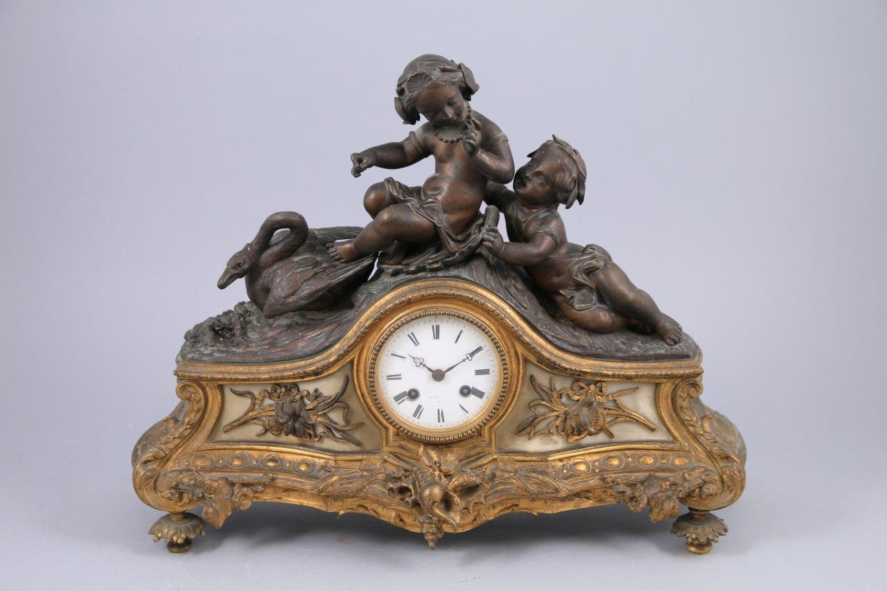 Pendule aux enfants et au cygne