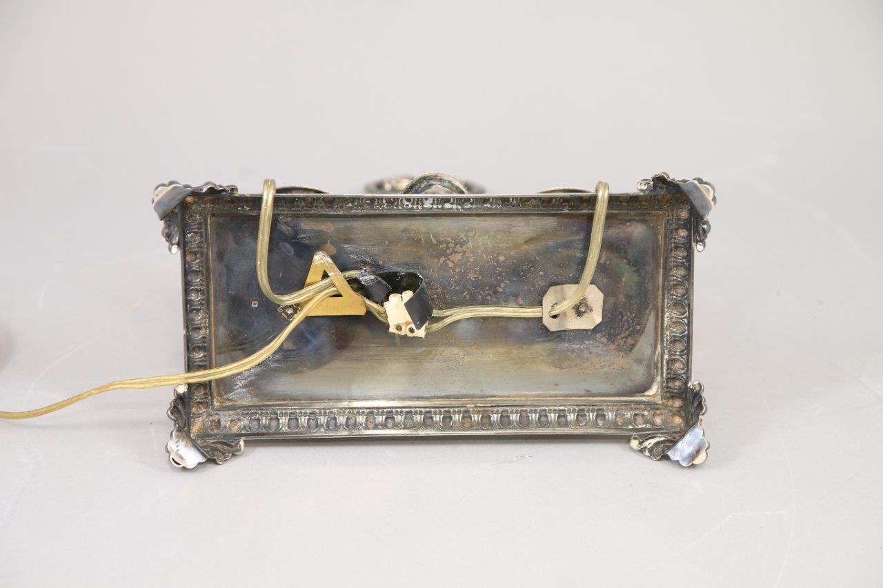 en argent à décor de palmes et acanthe sur une base quadrangulaire reposant sur des pieds feuillagés.
