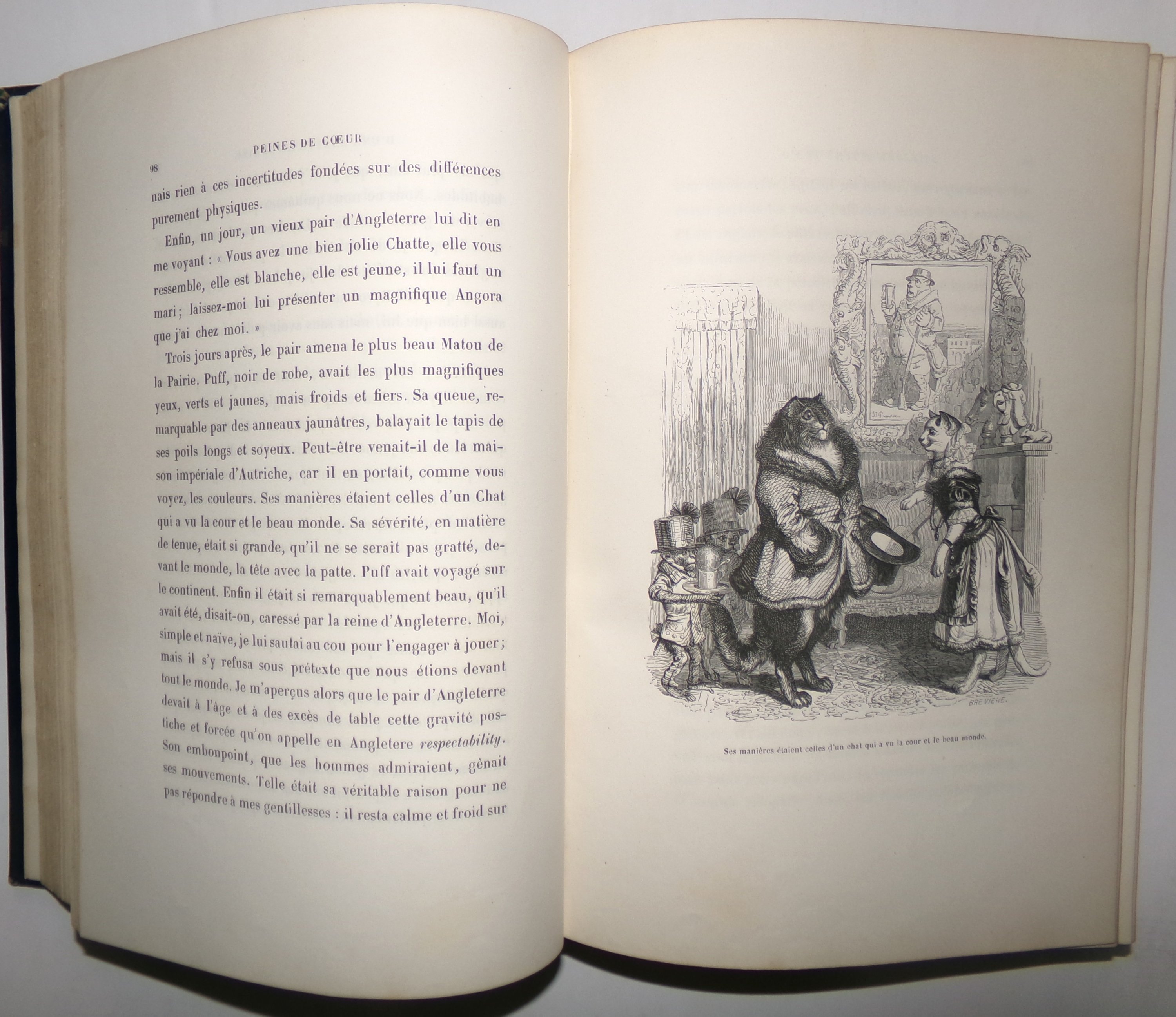 Jean Isidore Grandville, Scènes de la vie privée et publique des animaux. Tome 1er. Paris, Hetzel, 1842. In-4 rel. in-4, 387 pp. et tables. Bel exemplaire.