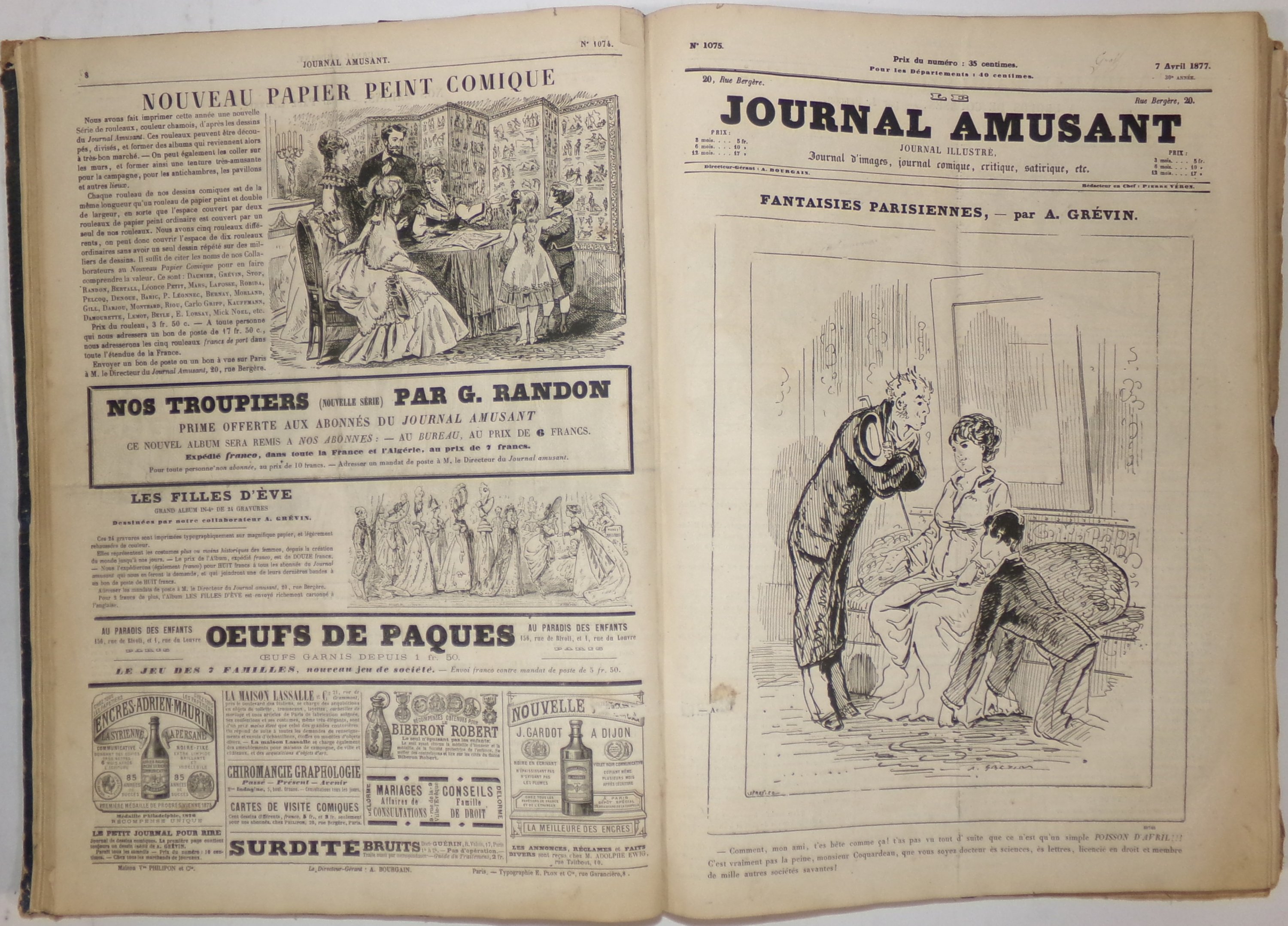 (1 vol.) n°1062 (6 janv. 1877) au 1113 (29 déc. 1877) (mque 1071), y compris prospectus du catalogue de la maison Philipon ;