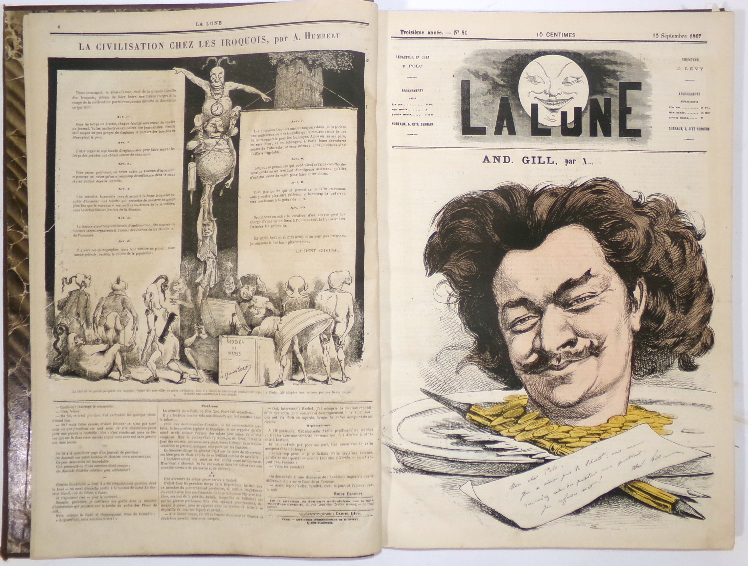 (1 vol.) La Lune : n°3 (déc. 1865) au n°24 (19 août 1866), n°28 (16 sept. 1866) au n°59 (21 avril 1867) ; Drolatic Industry n°1 (13 avril. 1867) ;
