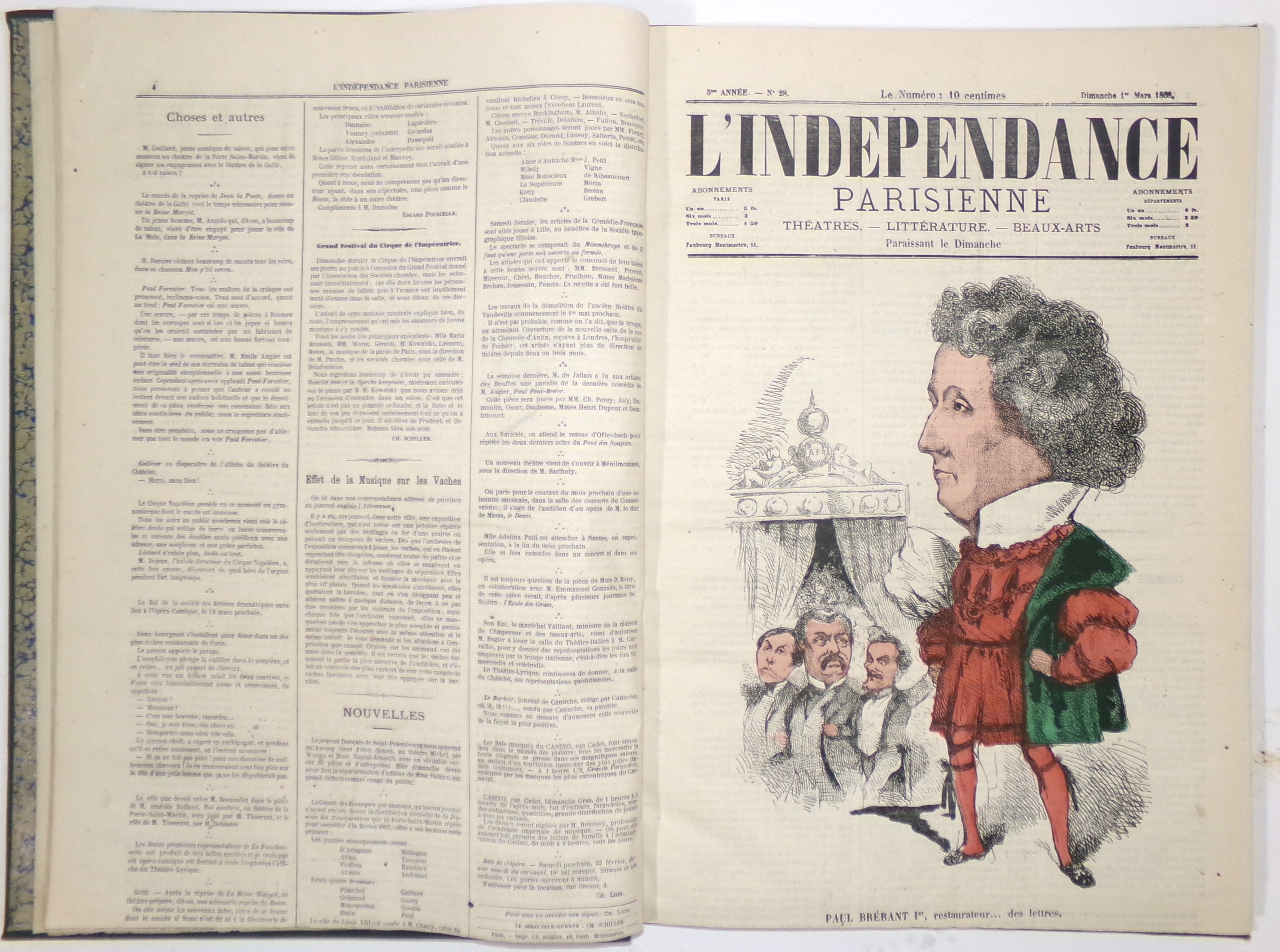 (1 vol.) L’Indépendance parisienne : n°18 (22 déc. 1867) au n°36 (26 avril 1868) (mque 19 ; 20, 29) ;
