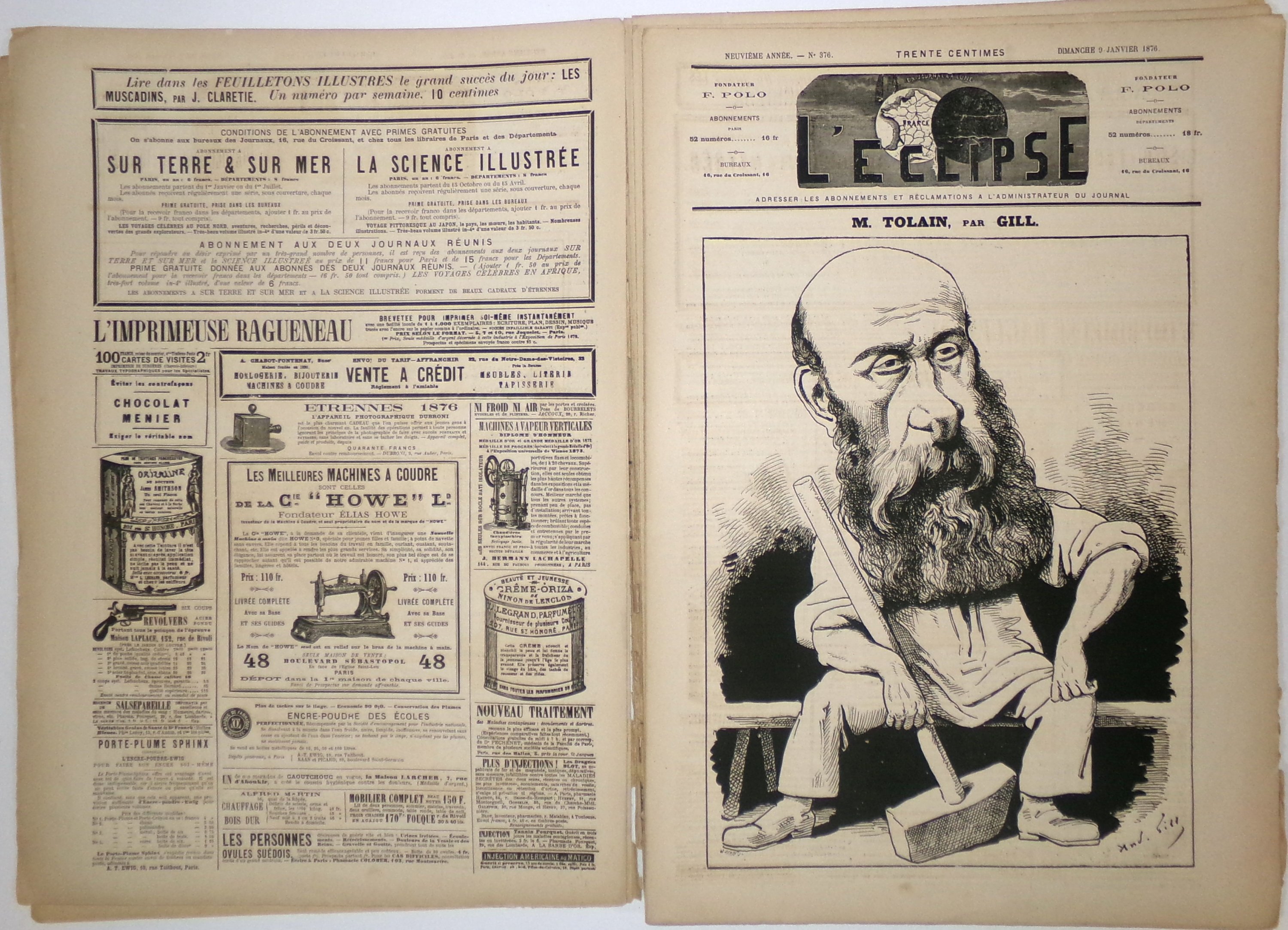 (1 vol.) : n°375 (2 janvier 1876) au n°400 (25 juin 1876) ; B.E. (rousseurs, qqs déchirures). Couv. de l’éditeur (en l’état, déchirures) et page de titre.