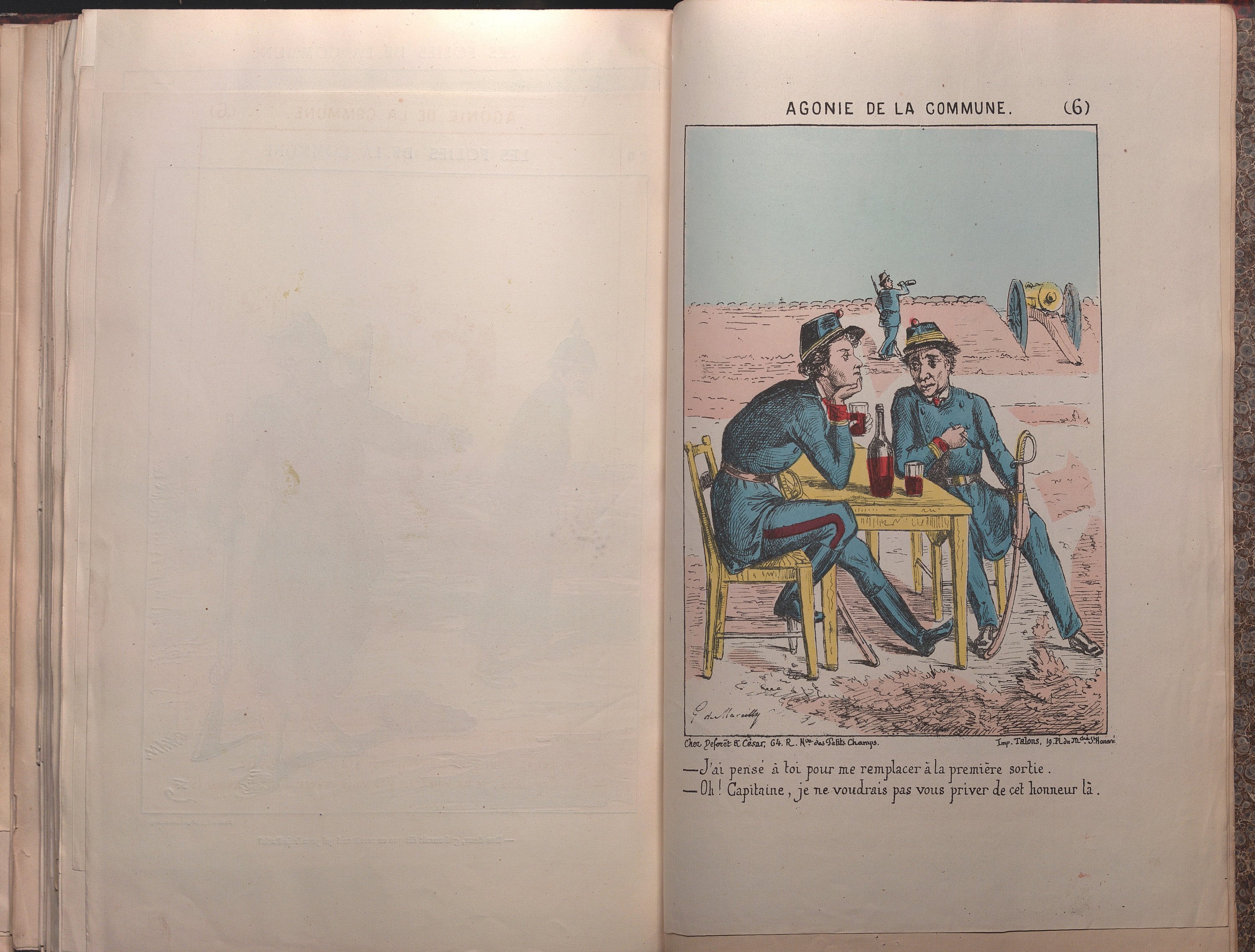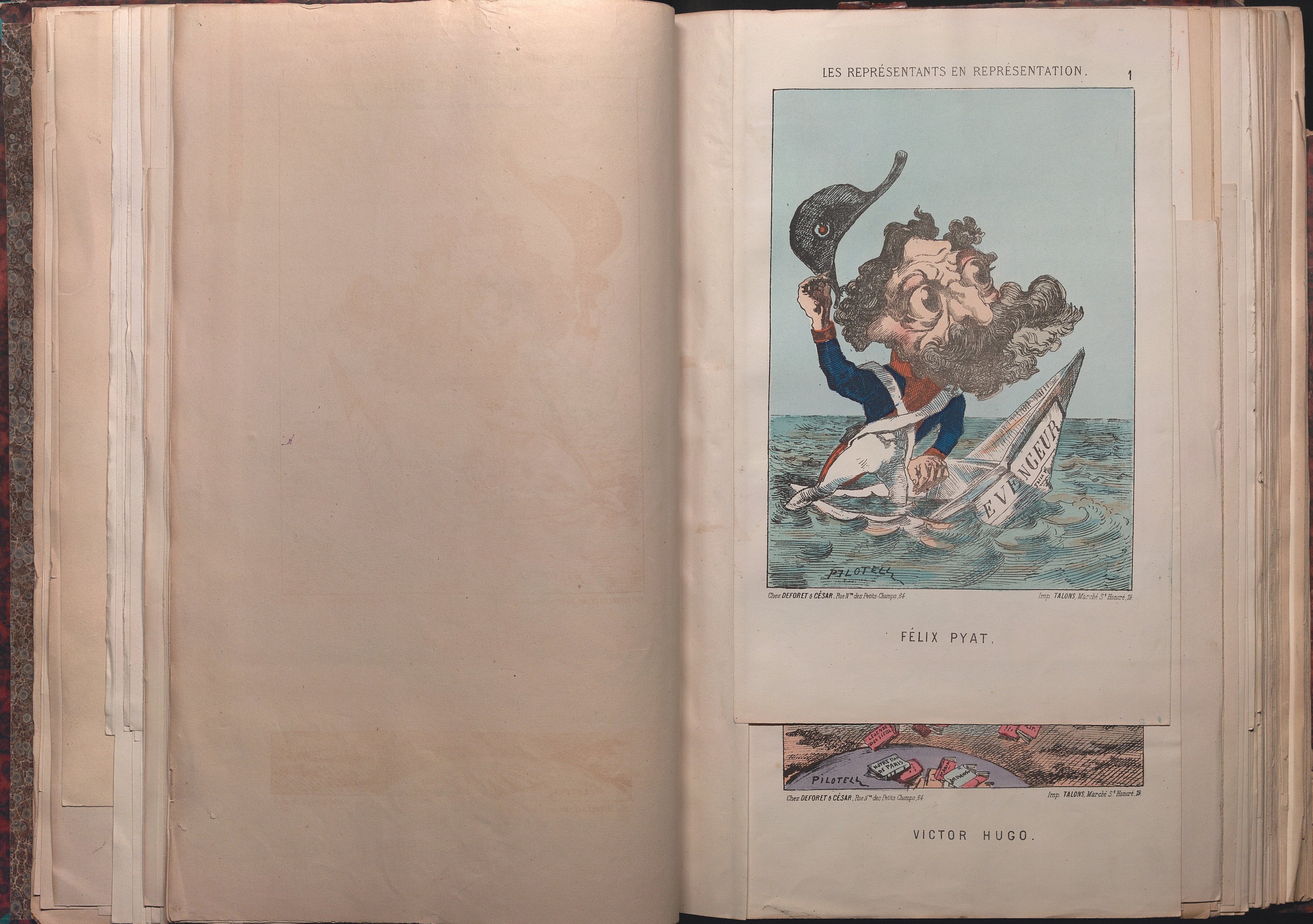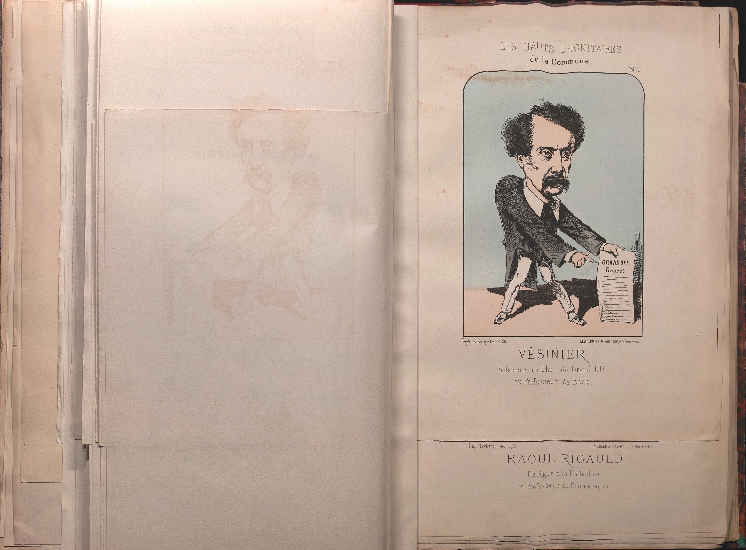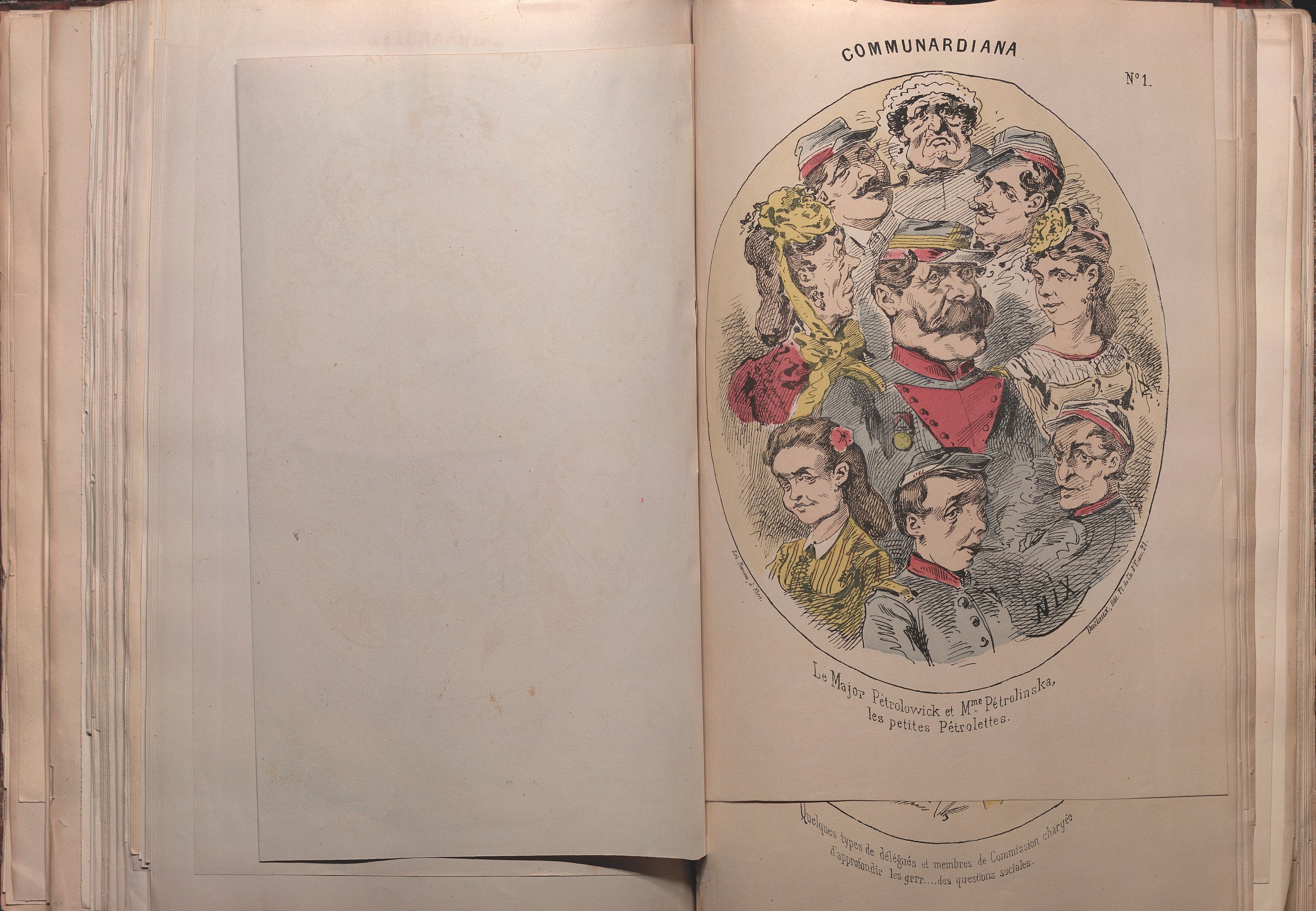 Georges Raoul Pilotelle (1845-1918) dit Pilotell : série Les représentants en représentation, n°1 à 3 (sur 5 pl.) ; série Communardiana, page de titre et n°1 au n°15 (mque 11-13) ;