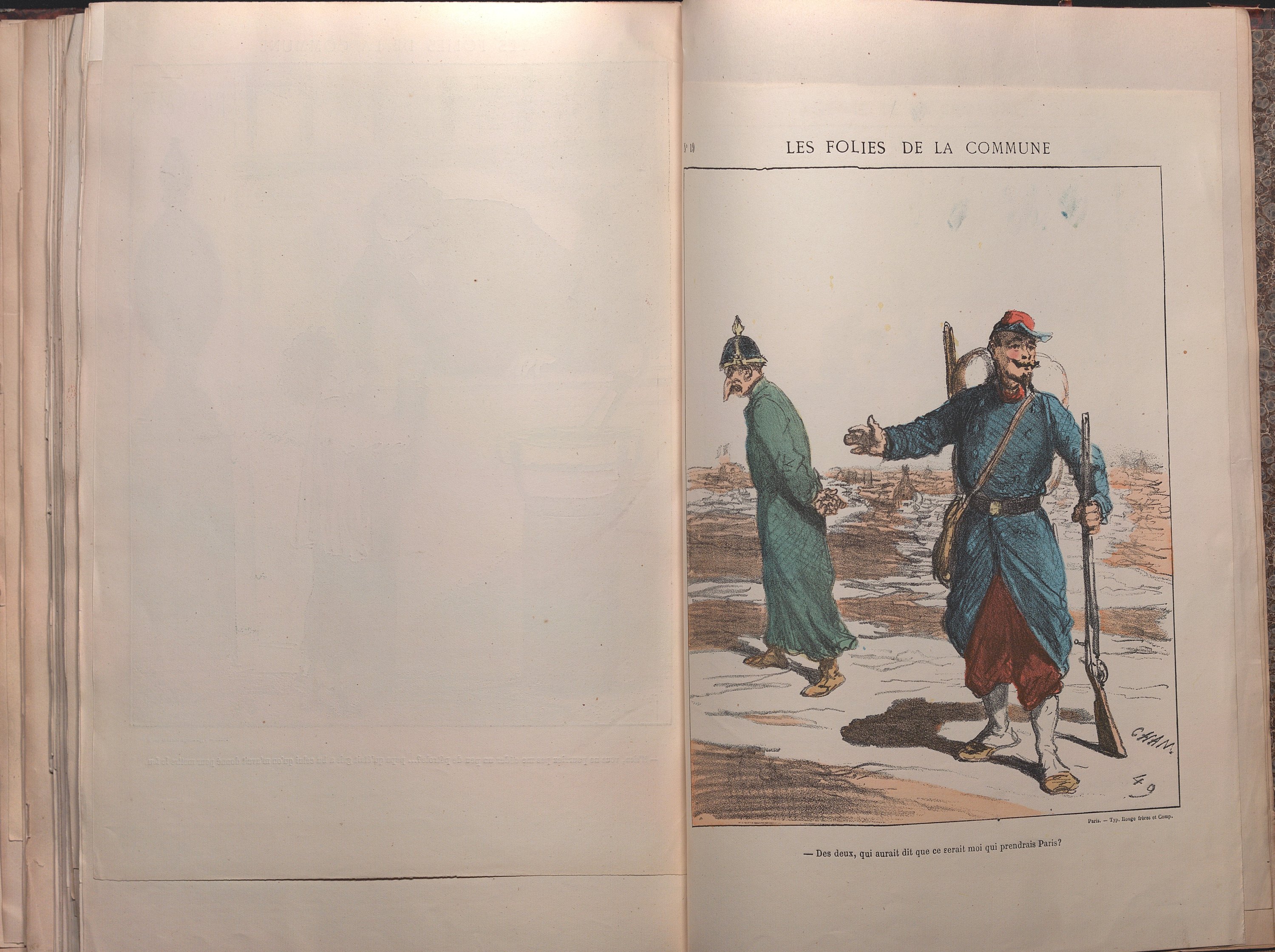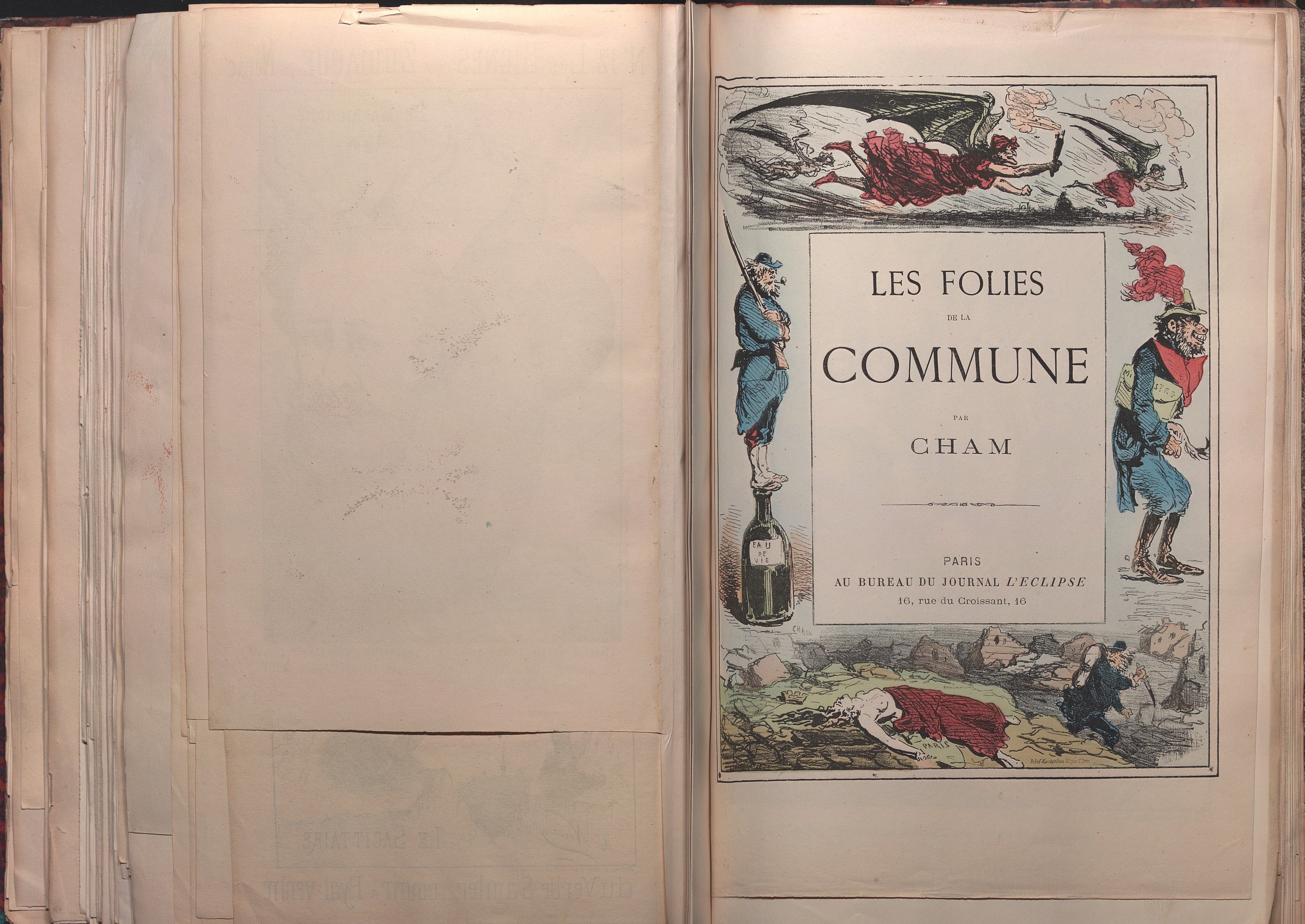 Amédée de Noé dit Cham (1818-1879) : série Les Folies de la Commune, page de titre et n°1 au n°19 (complet) ;