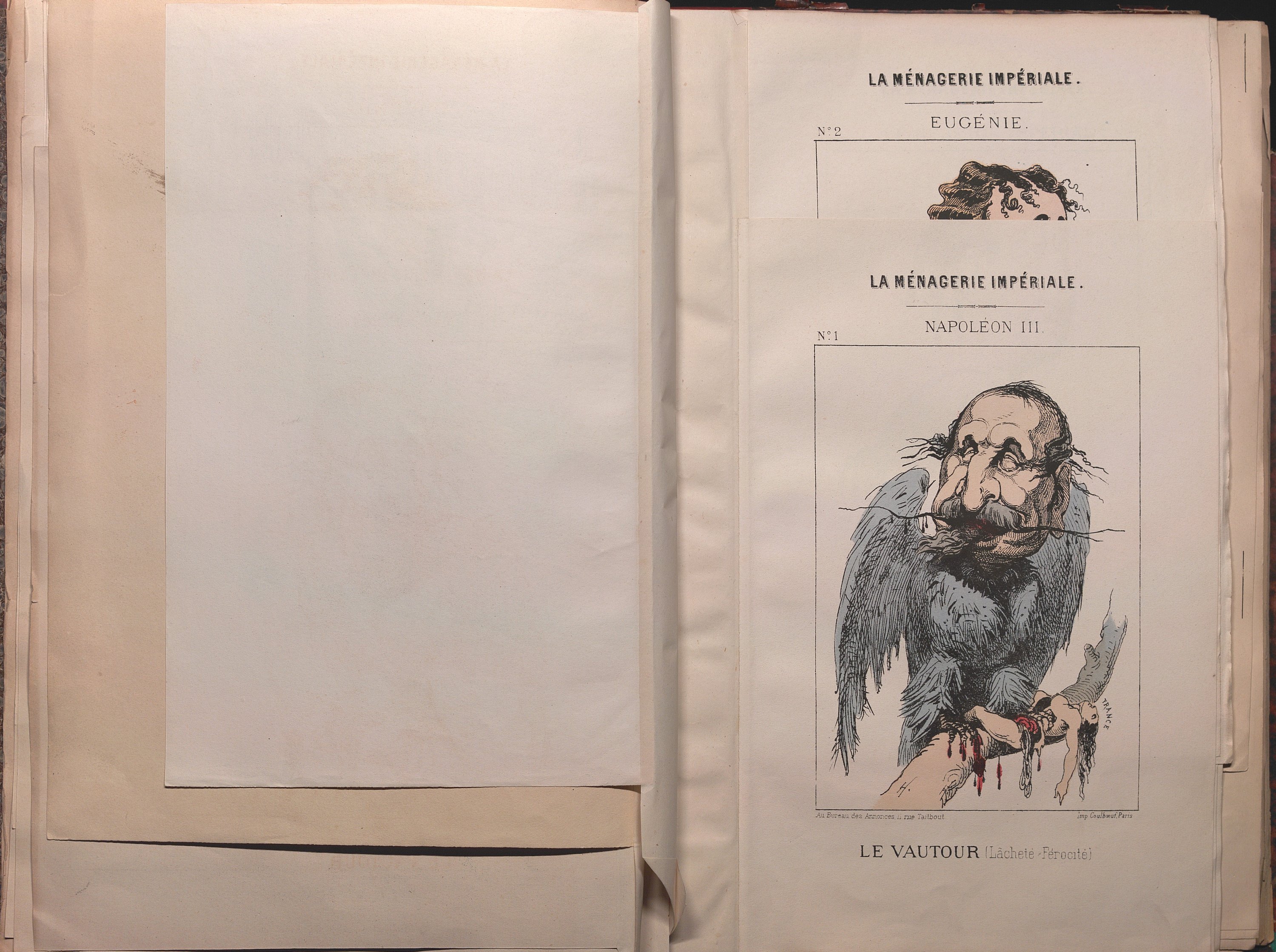 Paul Hadol (1835-1875) : série La Ménagerie impériale, page de titre et n°1 au n°31 (complet) ;