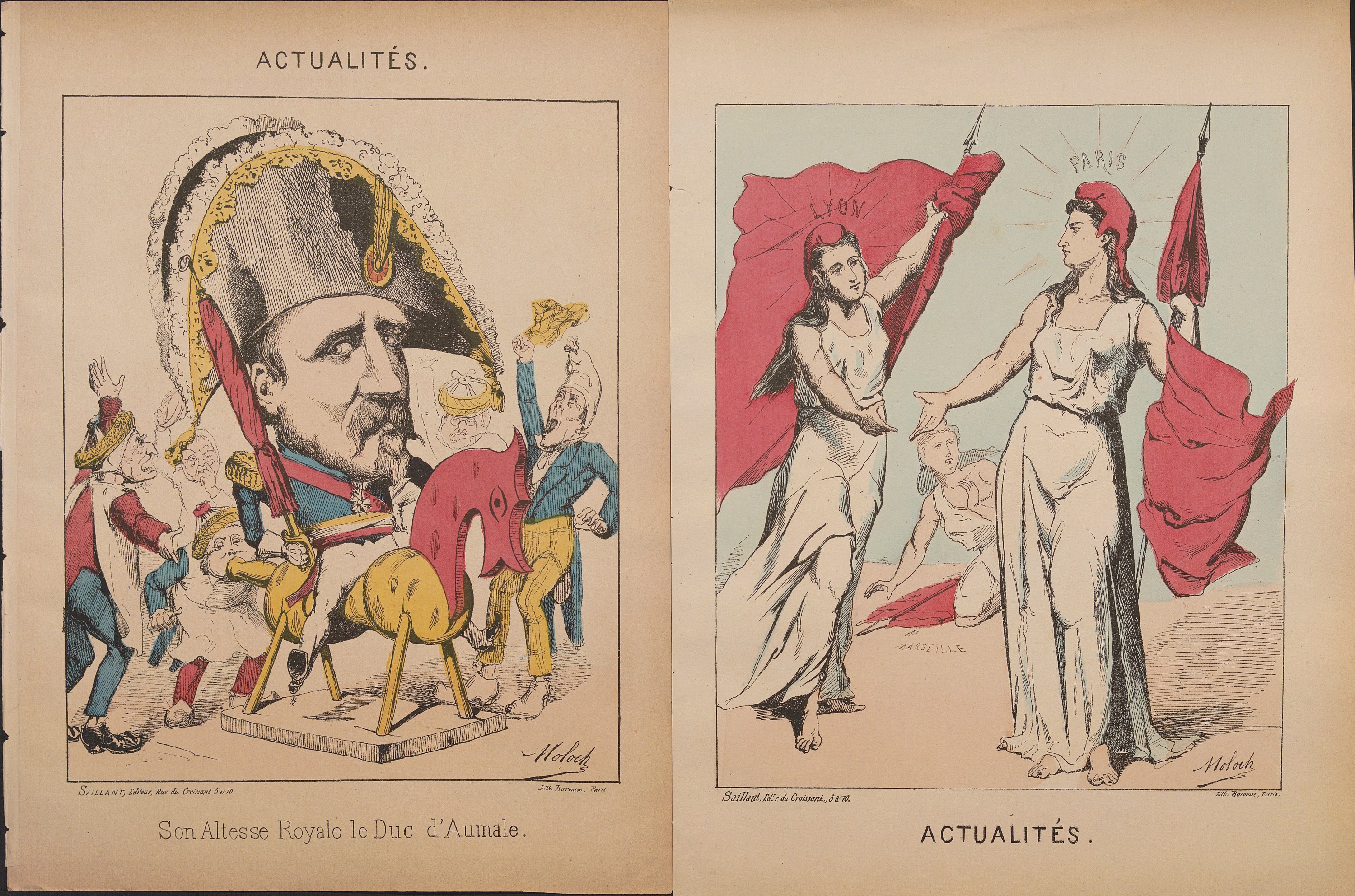 Actualités, série complète des 8 lithographies en couleurs, 36 x 27,5 cm (petits déf.) ;