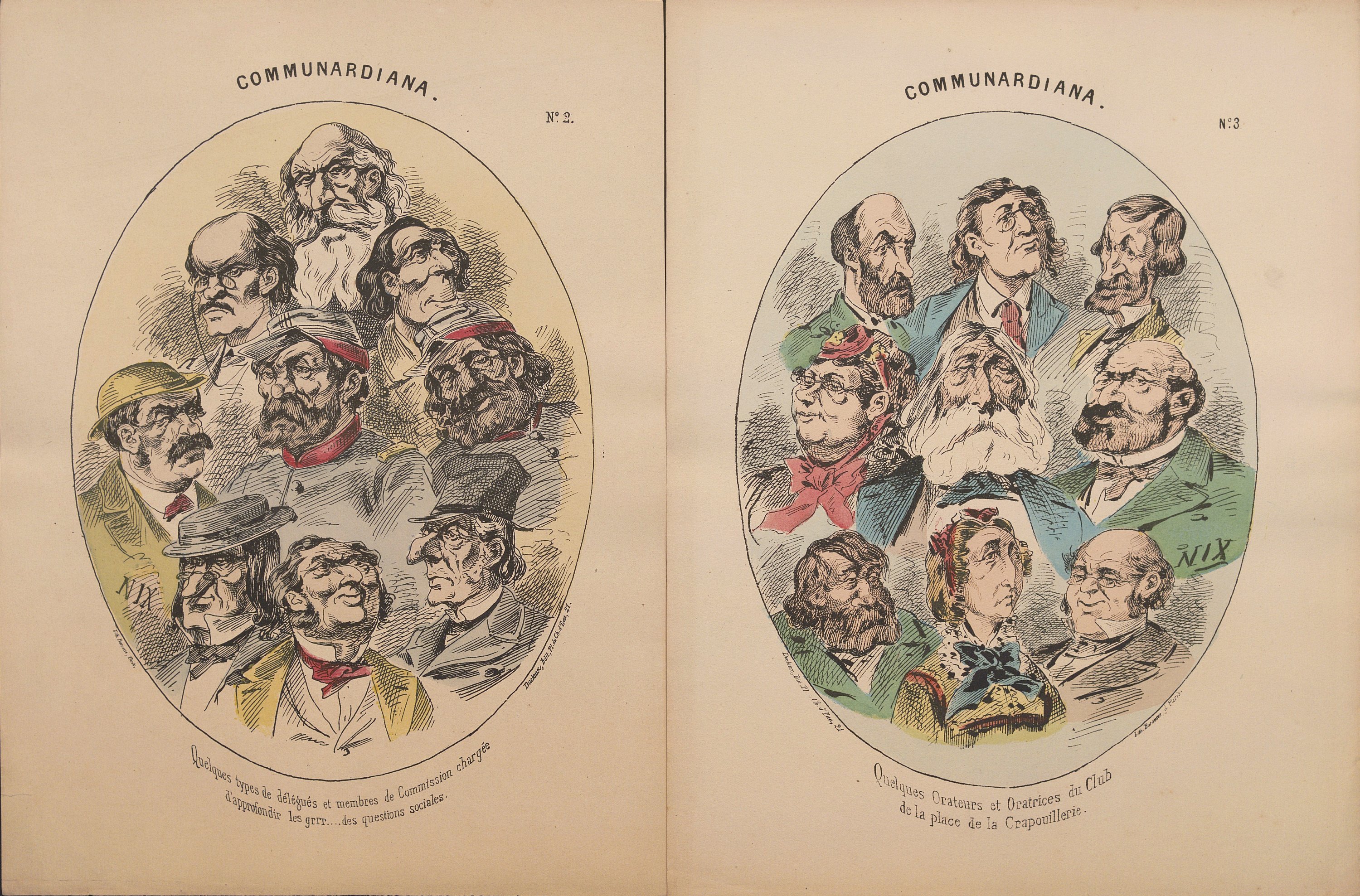 Série complète Communardia, page de titre, n°1 à 15 en couleurs, env. 32 x 25,5 cm. Joint 2 doublons en noir et blanc n°3 et 4.