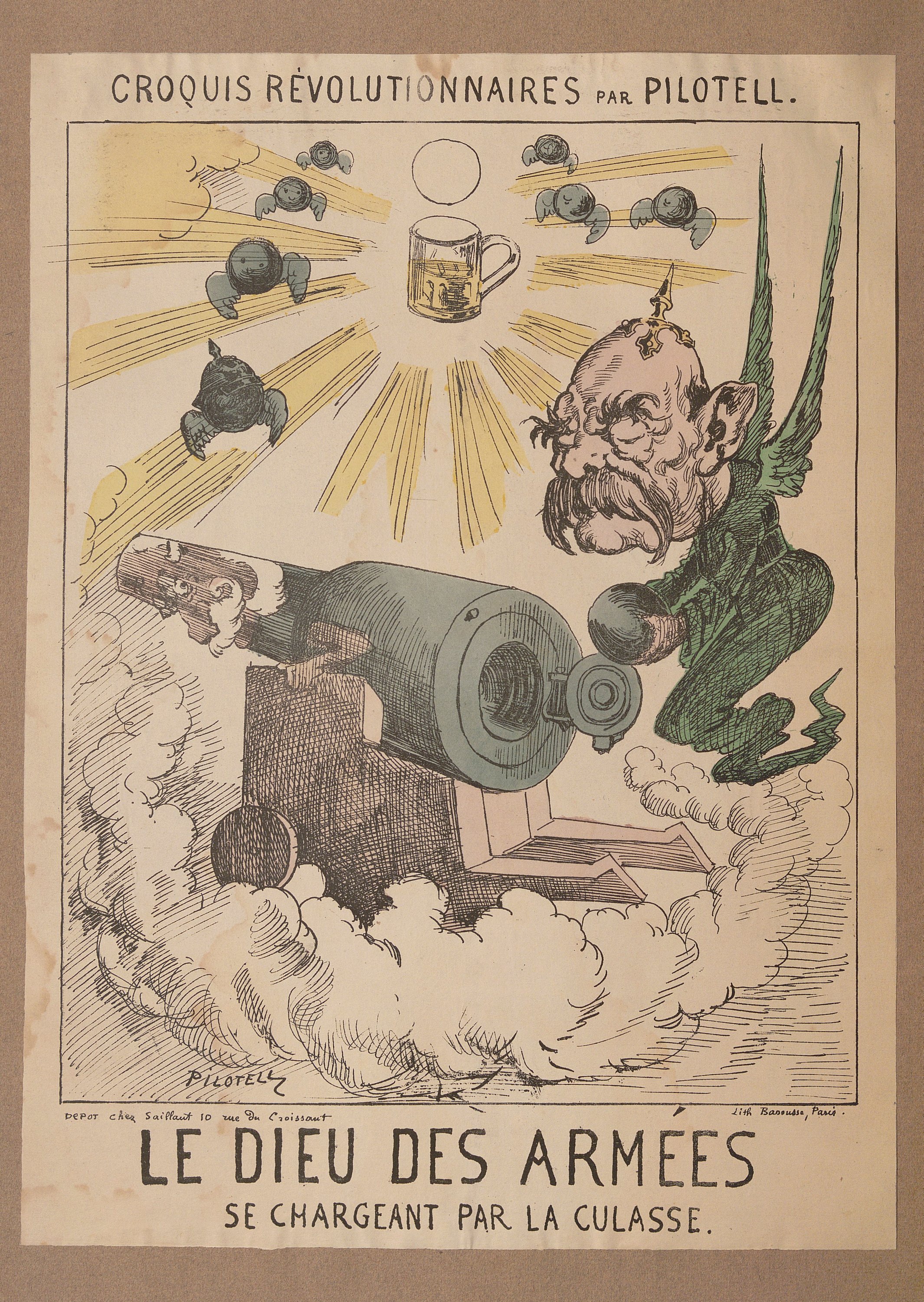 Les preuves de l’infamie de M. H. de Villemessant , 32,5 x 27,5 cm (petite déchirure) ; Toutes trois trahies !, 36,5 x 26,5 cm, contrecollé sur feuillet ; La poire et le couteau, 32,5 x 22,5 cm ; Pièces authentiques, La Police, 36 x 25,5 cm ; La Parisienne, chant de Léon Charly, en N&B, 37,5 x 26 cm, contrecollé sur feuillet ; Sous l’Empire, L’éducation d’un Prince, 26 x 34,5 cm ; série Actualités chez Deforet, n°1 au n°23 (mque 13), formats divers (qqs petits déf.) ; Les représentants en représentation,n°2 et 3 (sur 5), 26 x 17 cm ; Croquis révolutionnaires, n°1, 3 et 5, formats et états divers ; La Bêtise humaine, n°1 et 2, 36,5x 27 cm.