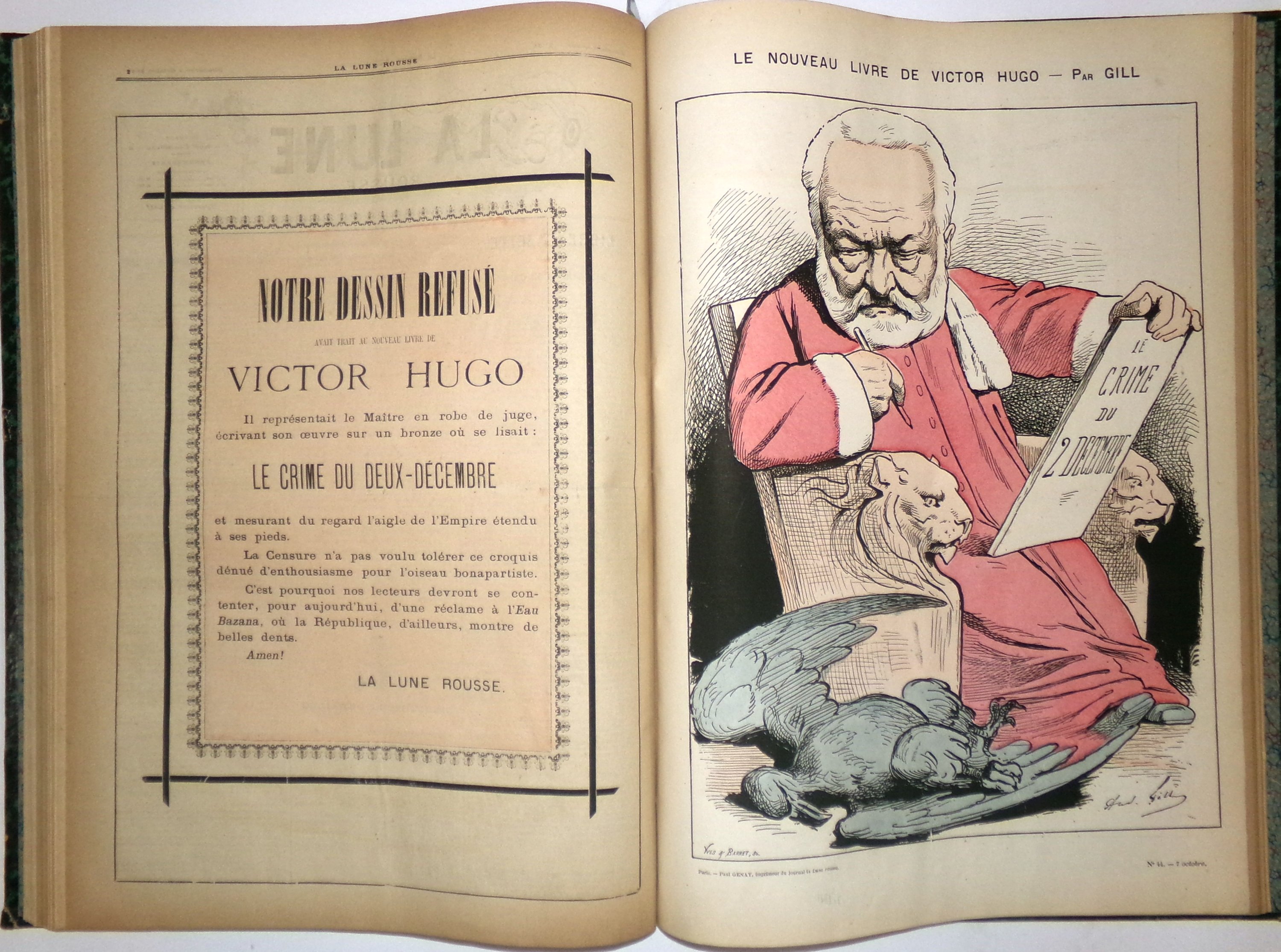 (1 vol.) : n°1 (16 décembre 1876) au n°4 (31 décembre 1876) ; n°5 (7 janvier 1877) au n°52 (2 décembre 1877) avec les 3 numéros exceptionnels : « Victor Hugo et la légende des siècles » ; « Monsieur Thiers » ; « Léon Gambetta » ; et les dessins refusés par la censure. T.B.E. (légères rouss.) ;