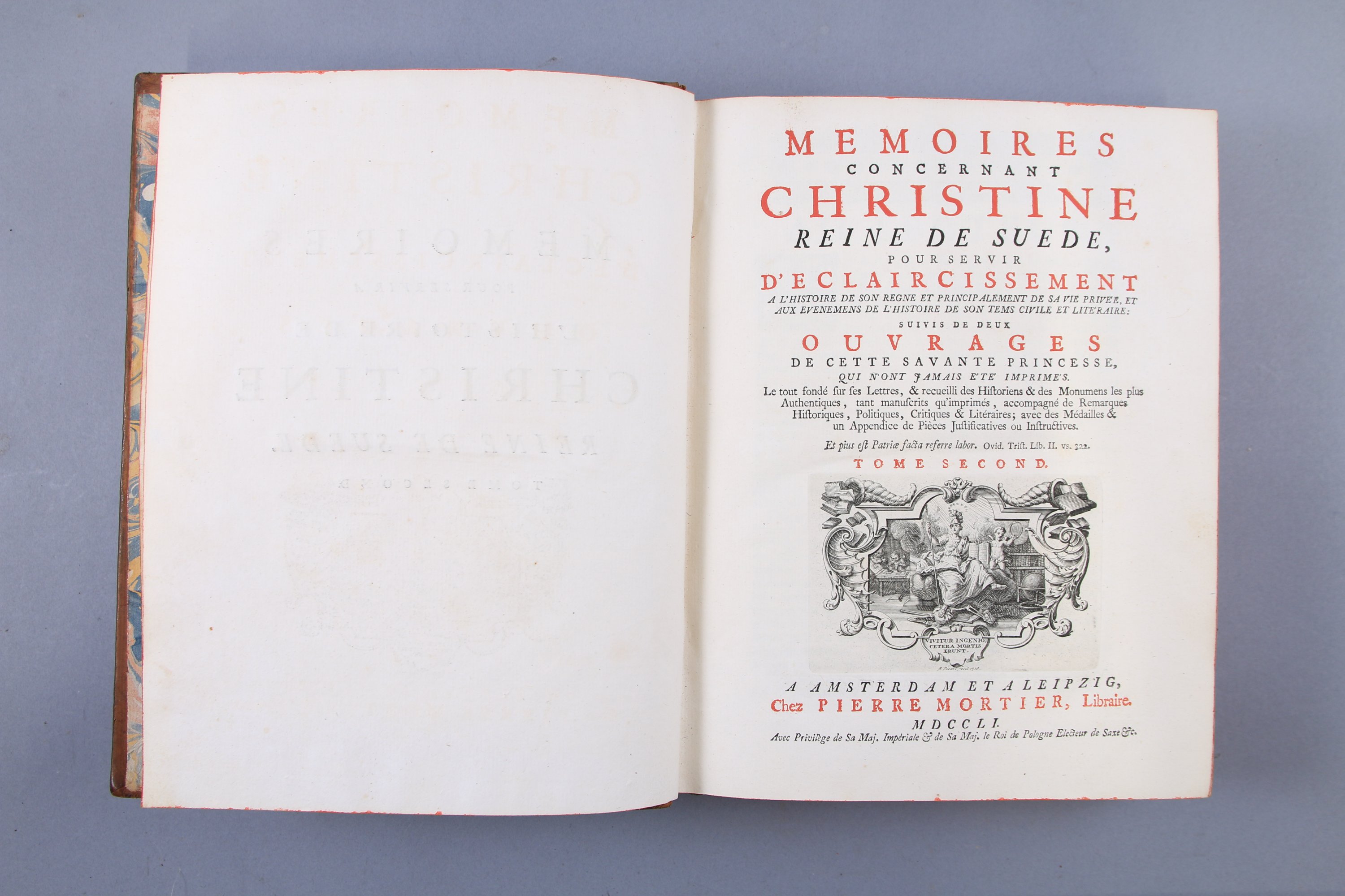 Mémoires concernant Christine, Reine de Suède ... Suivis de deux mémoires de cette savante princesse qui n'ont jamais été imprimés Amsterdam et Leipzig, chez Pierre Mortier. 1751