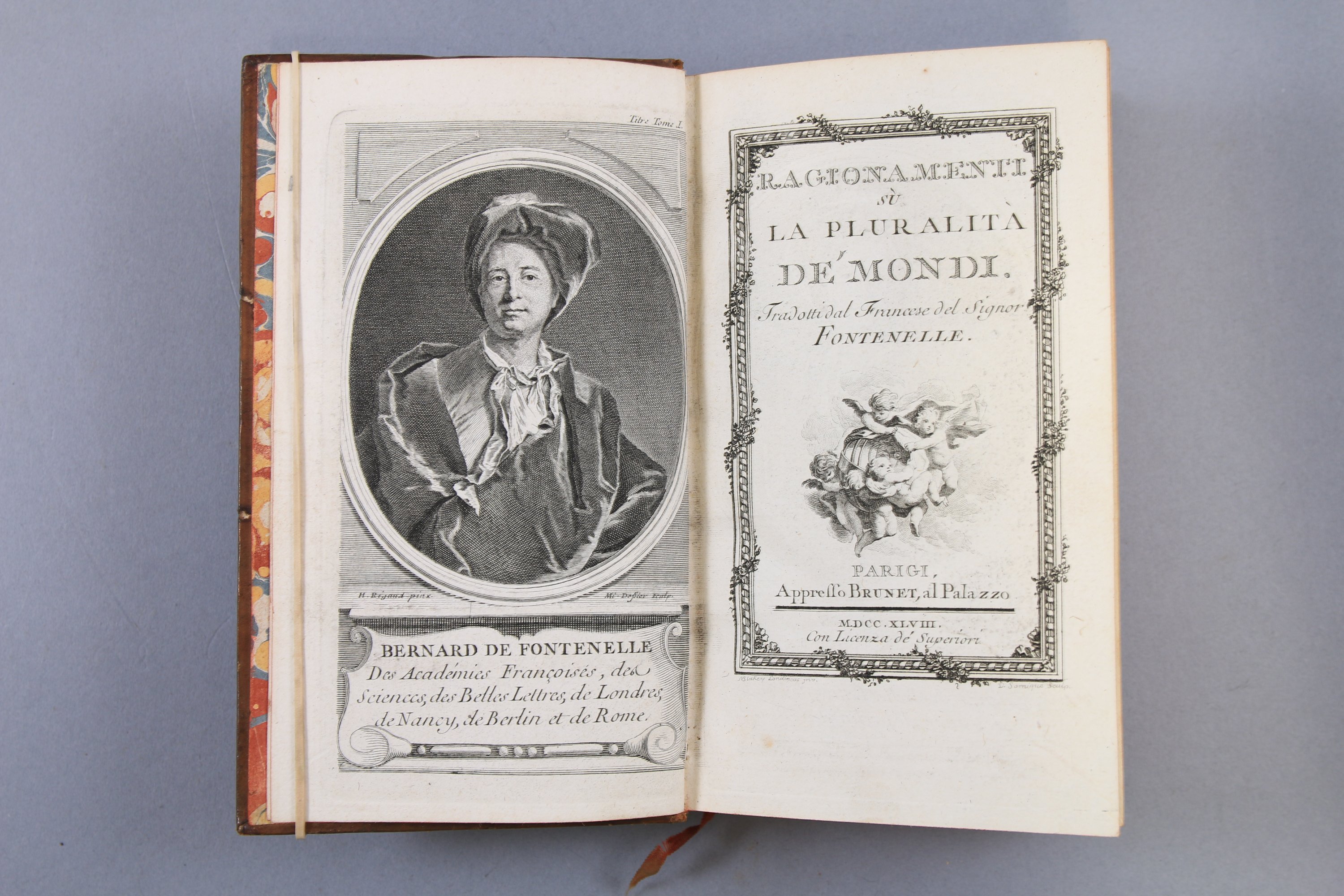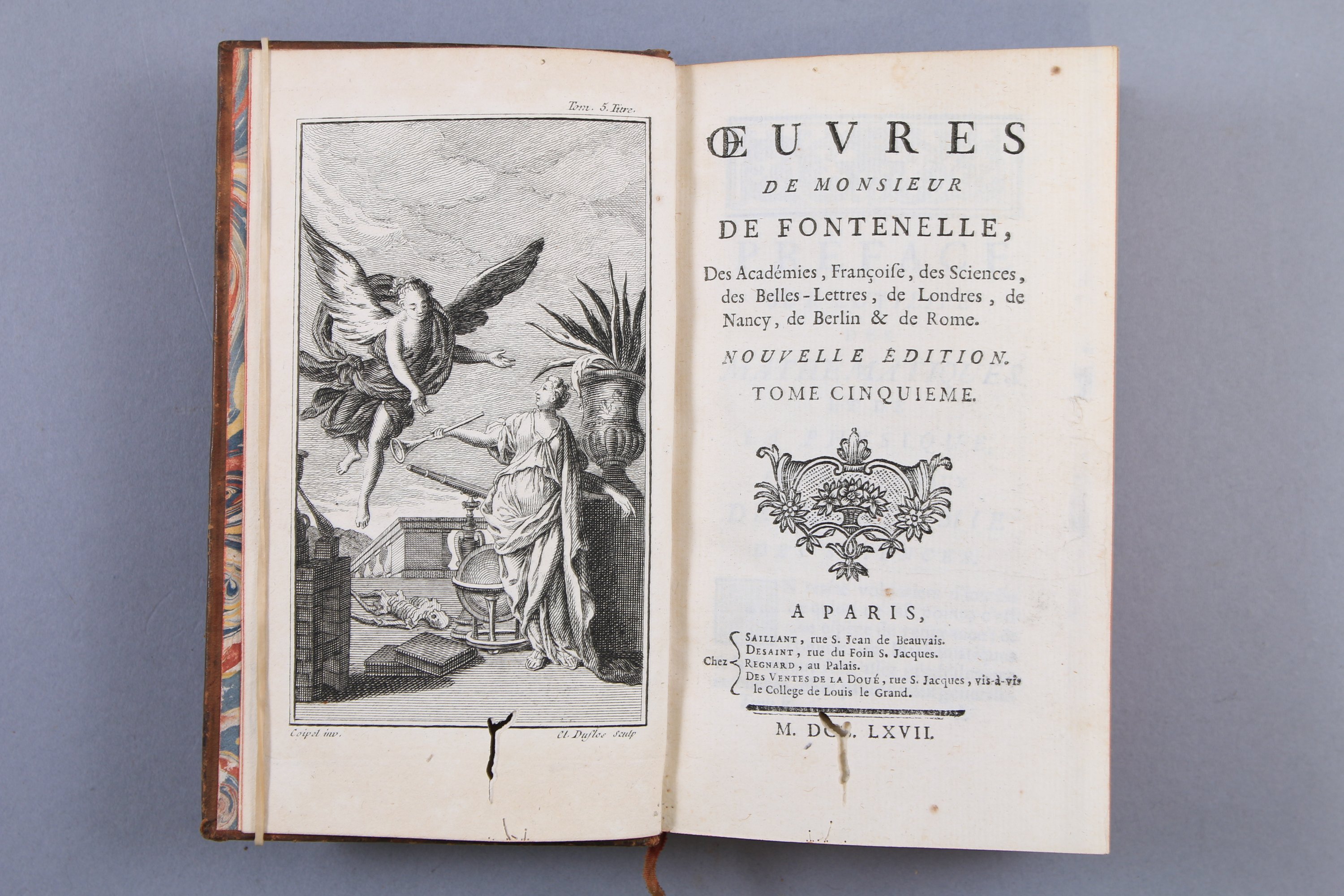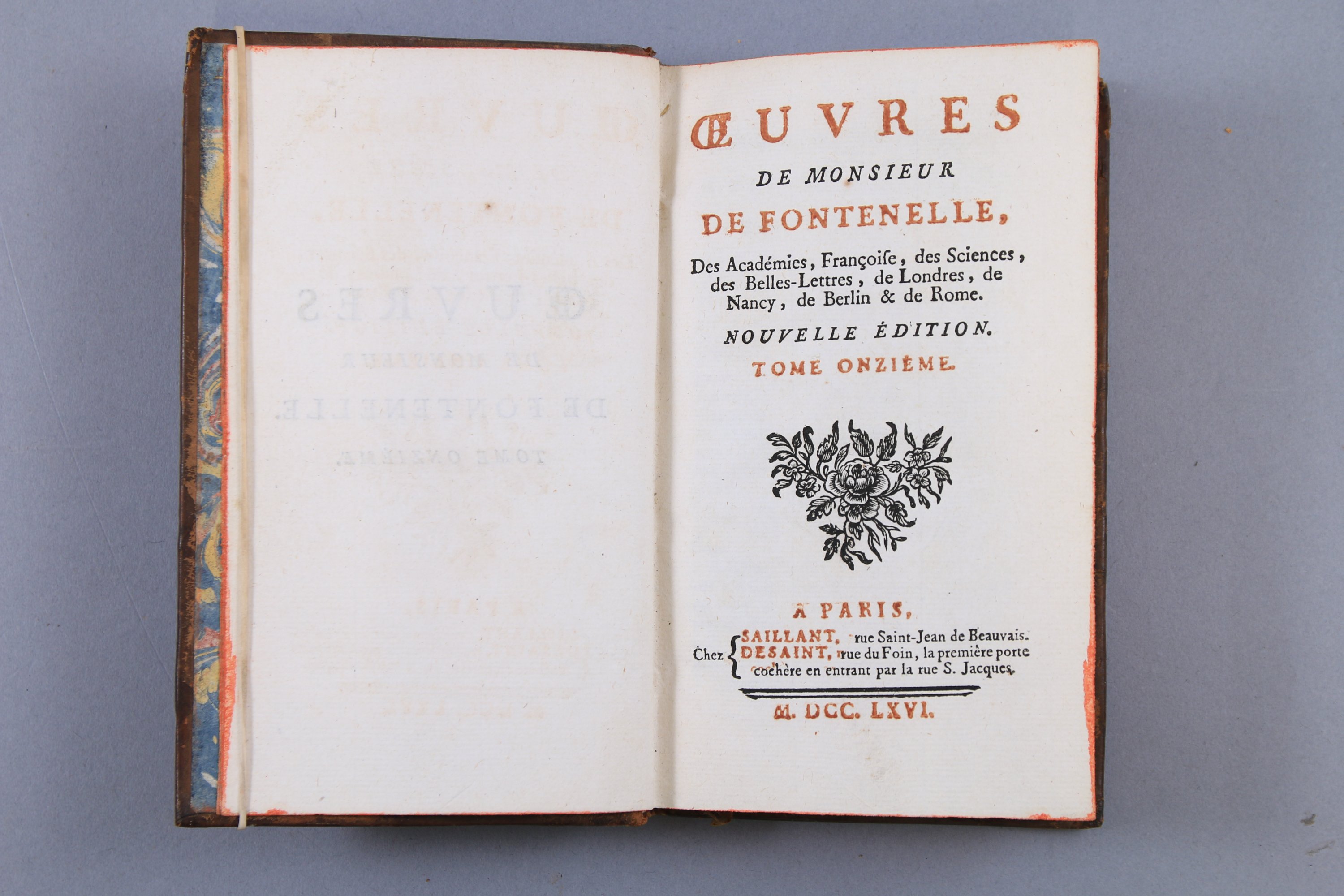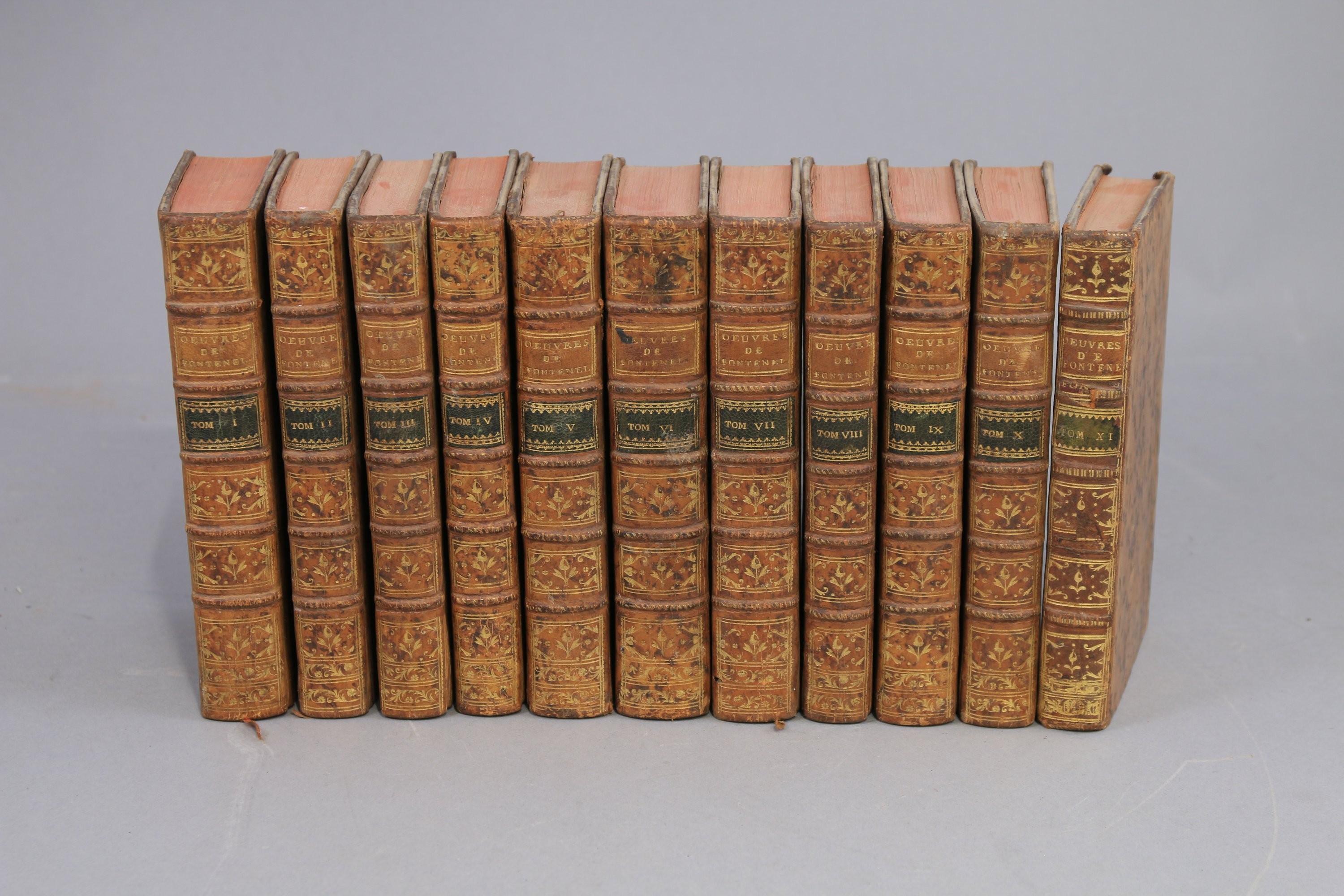 11 volumes in-8, plein veau raciné du temps. Frontispices et figures hors-texte. (Piqûres de ver dans la marge inférieure du tome V).