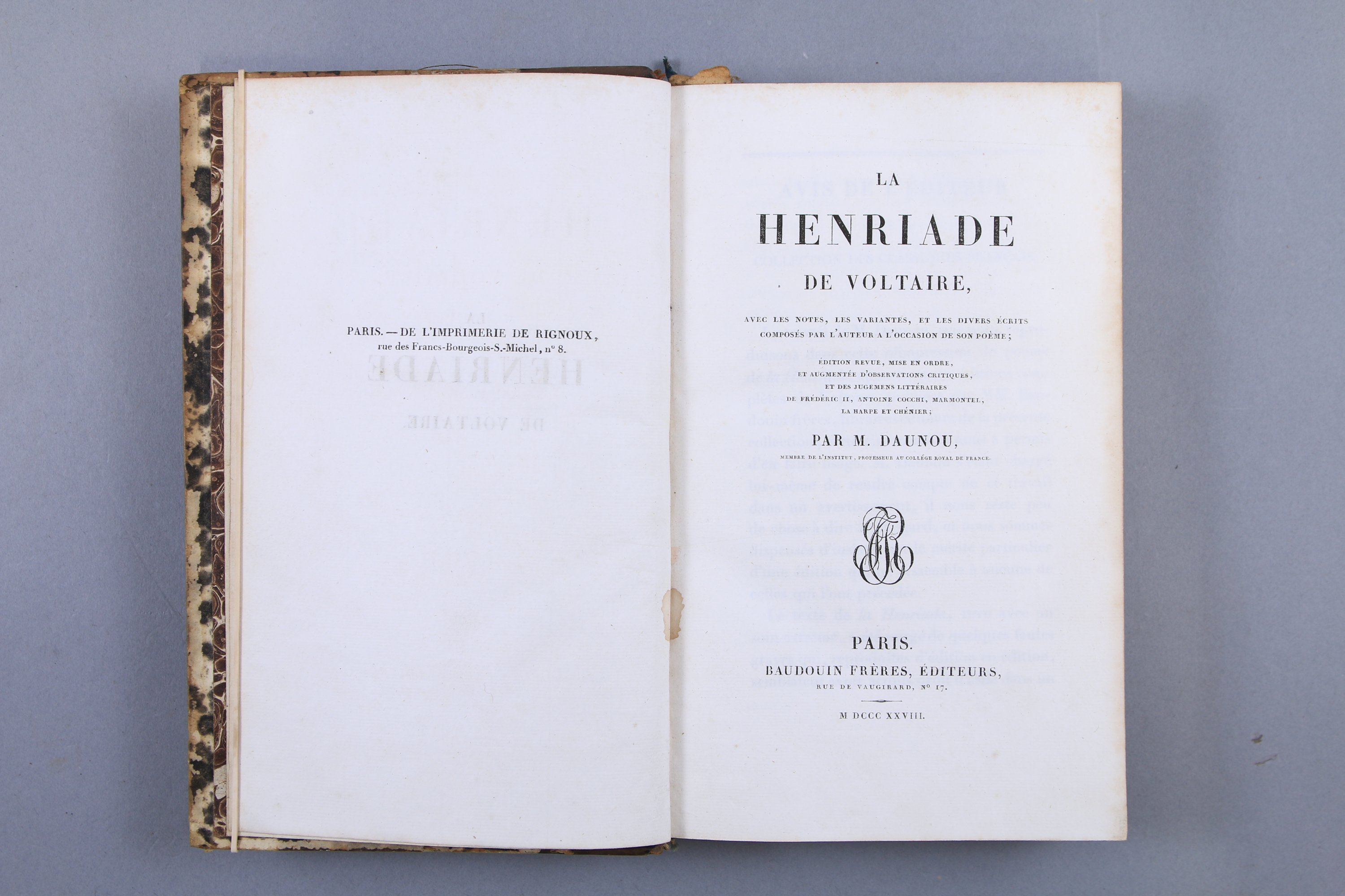 - Voltaire : La Henriade. Paris, Daunou, 1828. Grand in-8. 1/2 veau du temps.