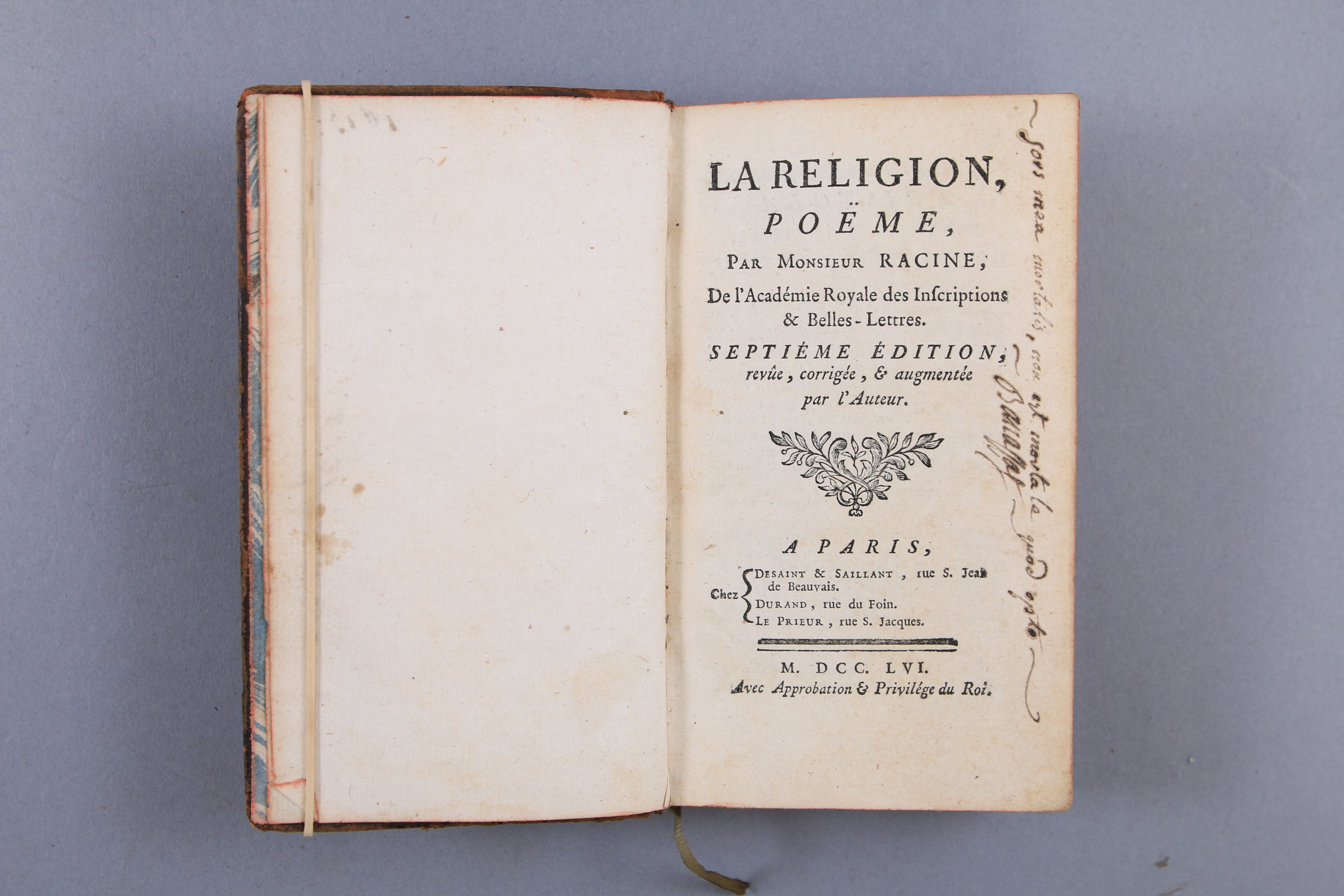 - Racine : La Religion. Paris, 1756. In-12, veau du temps.