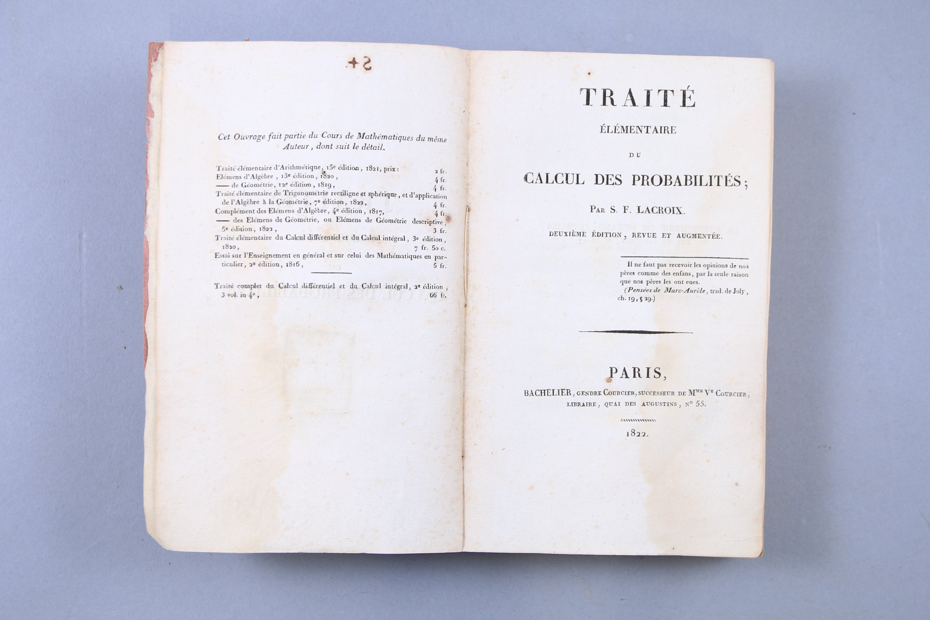 - LACROIX, S.F., Calcul des probablités, Paris, Bachelier, 1822, in-12 ;