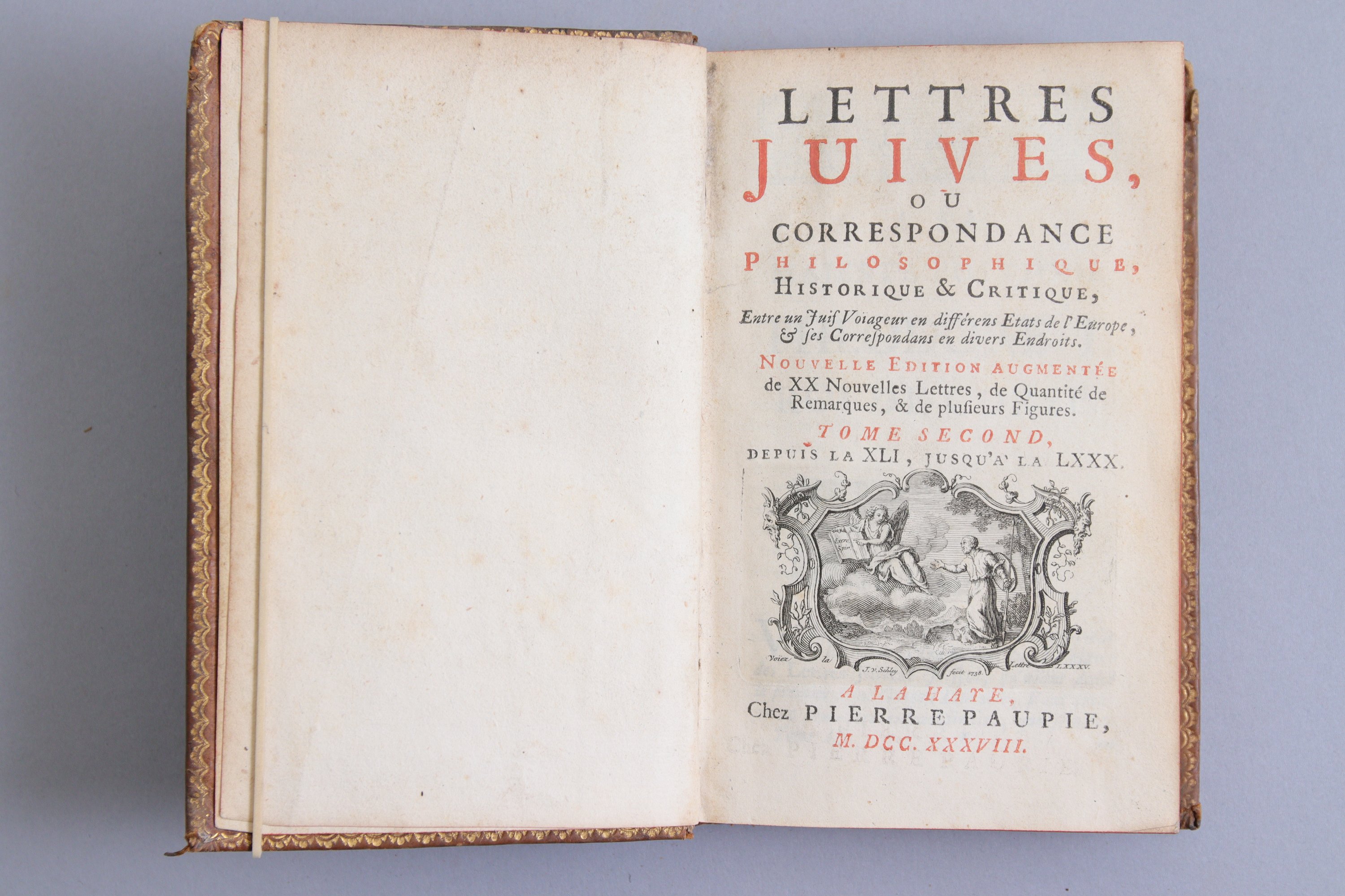 Lettres juives, ou Correspondance philosophique, historique et critique entre un Juig Voiageur en différens états de l'Europe et ses correspondants en divers endroits.. Nouvelle édition augmentée de XX nouvelles lettres, de quantité de remarques et de plusieurs figures. .