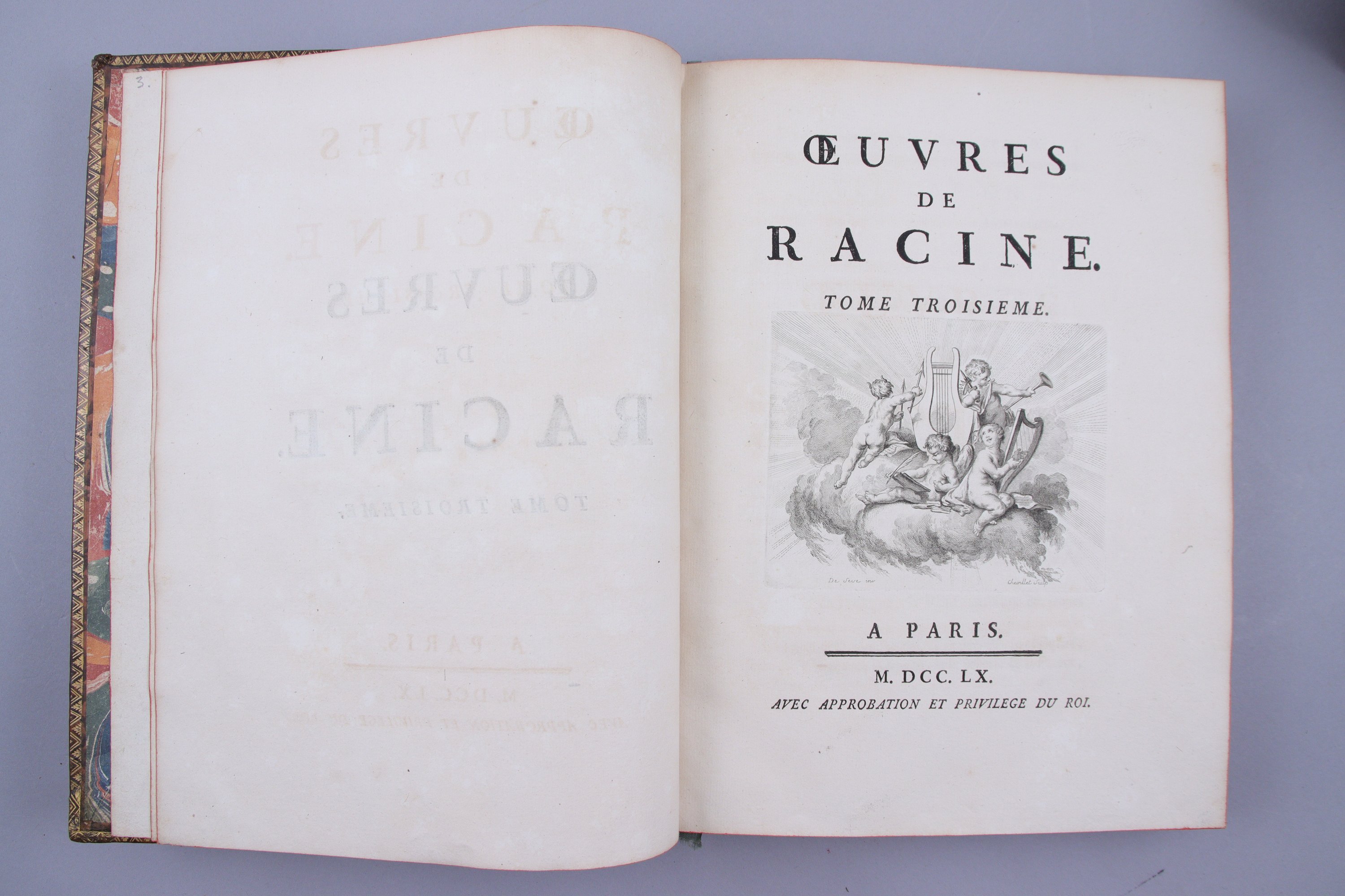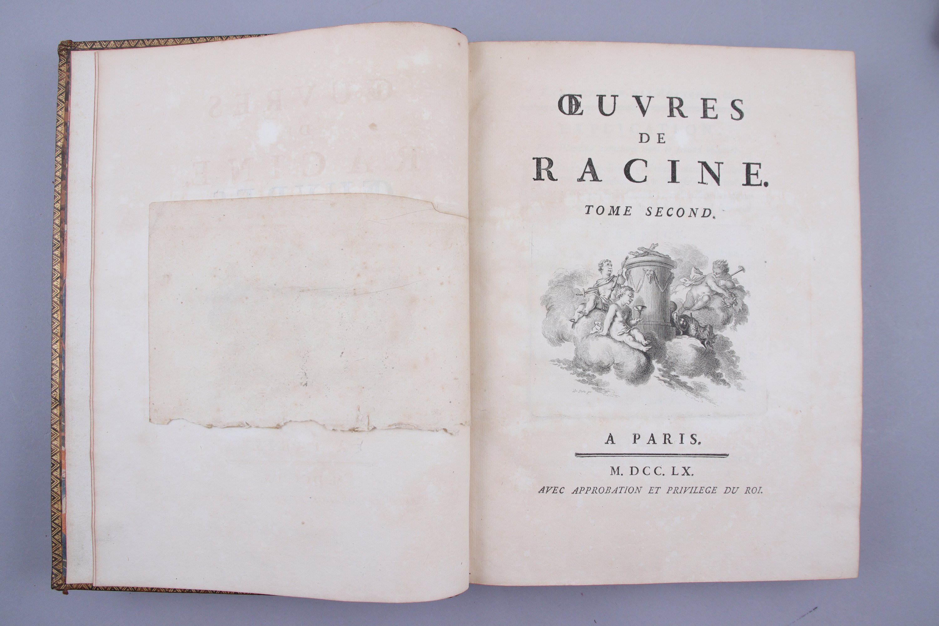 Portrait de Racine par Jean Daullé, graveur du Roi. 12 hors-texte de De Sève. 60 culs-de-lampe, 16 vignettes ou bandeaux par De Sève.
