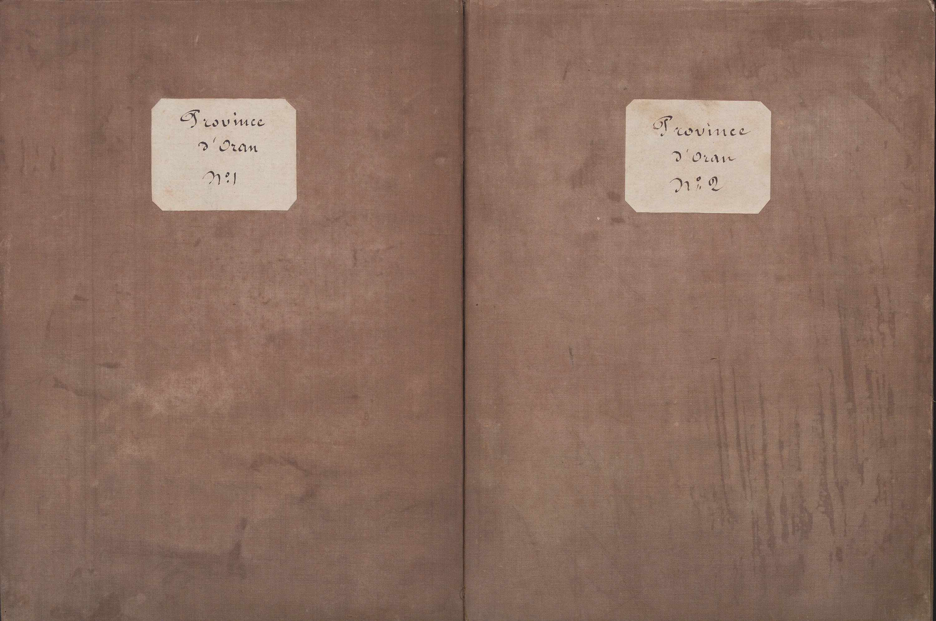 Carte d’état-major de la province d’Oran en 2 parties, dressées par le colonel Blondel, imp. à Paris en 1856, contrecollées sur toile et pliées.