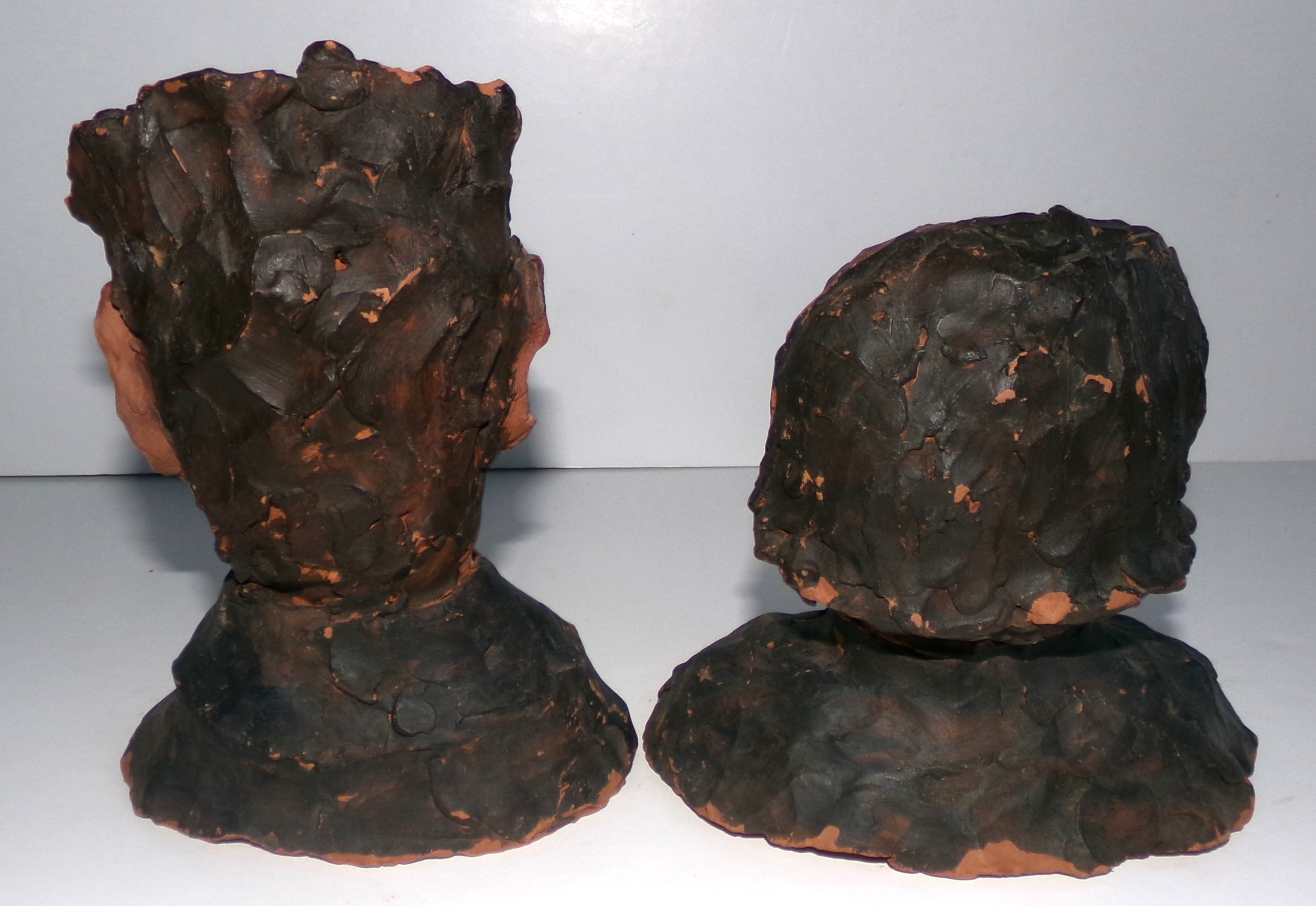 2 bustes d’hommes en terre cuite polychromes dans le goût des « Célébrités du Juste Milieu » d’Honoré Daumier.