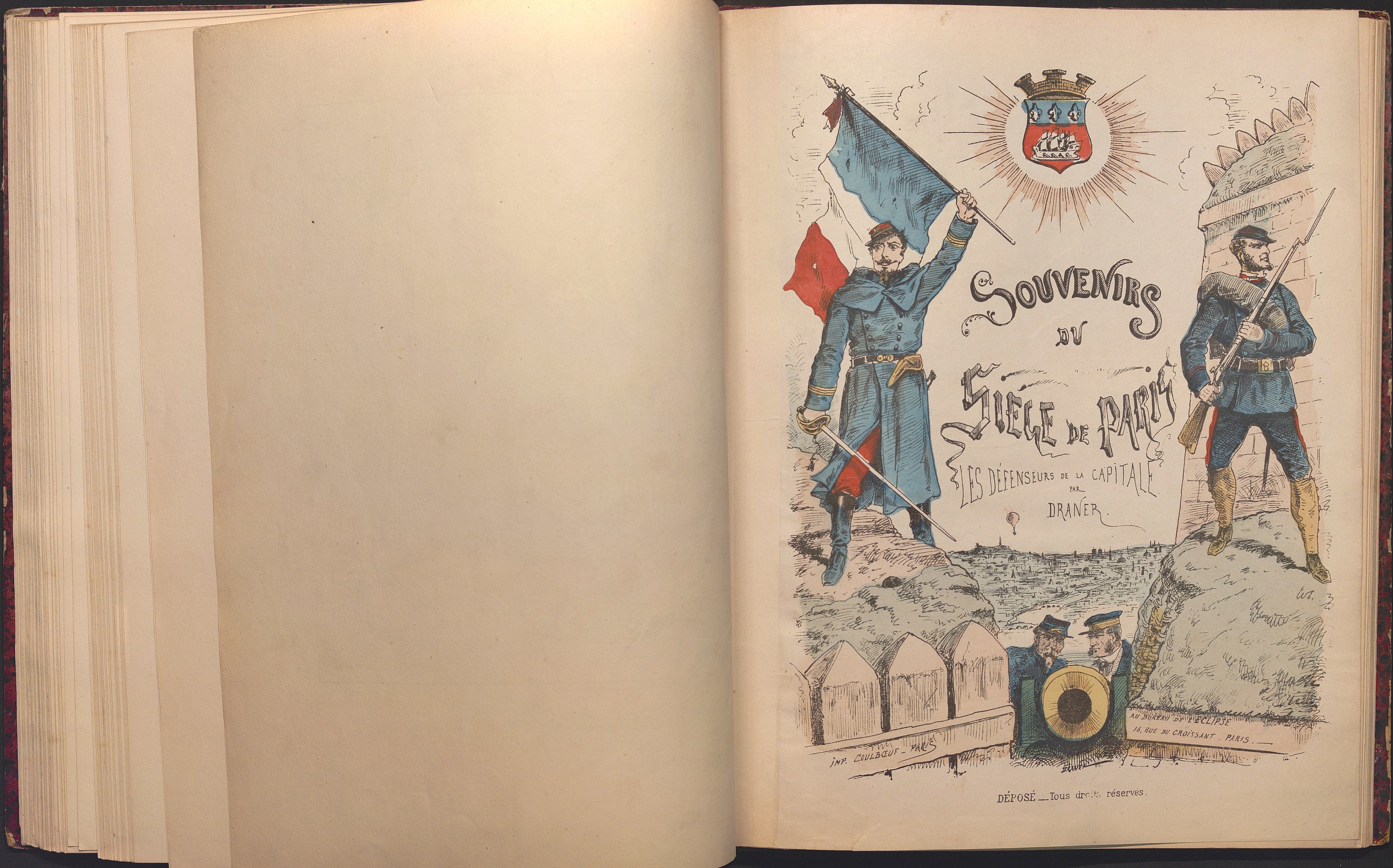 Jules Renard dit Draner (1833-1890), Souvenirs du Siège de Paris. Les Défenseurs de la Capitale. [Suivi de] Paris assiégé. Vie parisienne. [Suivi de] Les Soldats de la République. L'Armée française en Campagne.? Paris, Au Bureau de L'Eclipse, [1871-1872]. In-4 rel. ½ chagr. rouge, 2 ff. (titre) et 31 pl., 2 ff. (titre) et 31 pl.- 2 ff. (titre) et 31 pl. Complet des 96 pl. en couleurs montées sur onglets (qqs rouss., rest. à 1 pl.) B.E. à T.B.E.