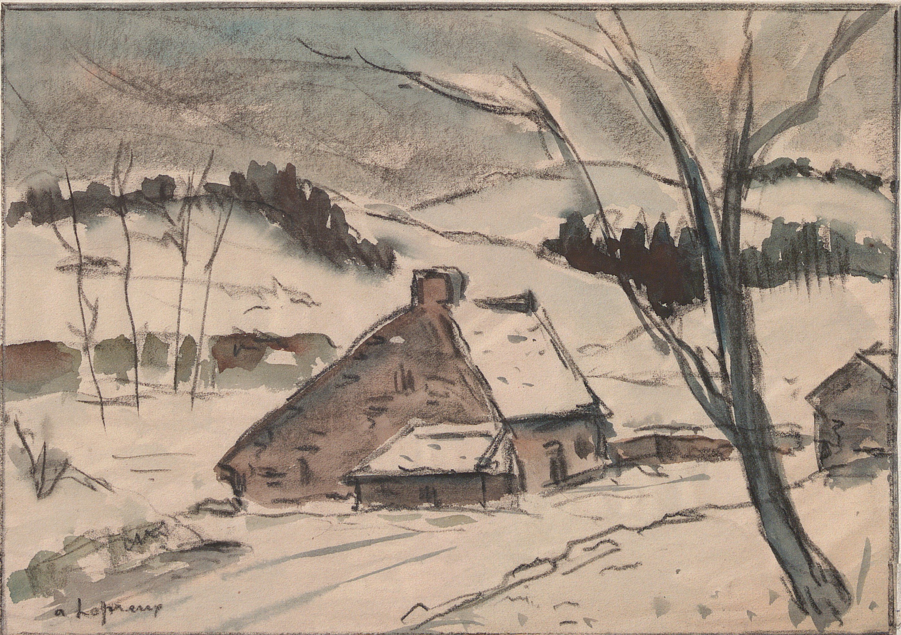 Albert Lepreux (1898-1959), Paysage enneigé, crayon noir et aquarelle, signé en bas à gauche, 14 x 20 cm ;