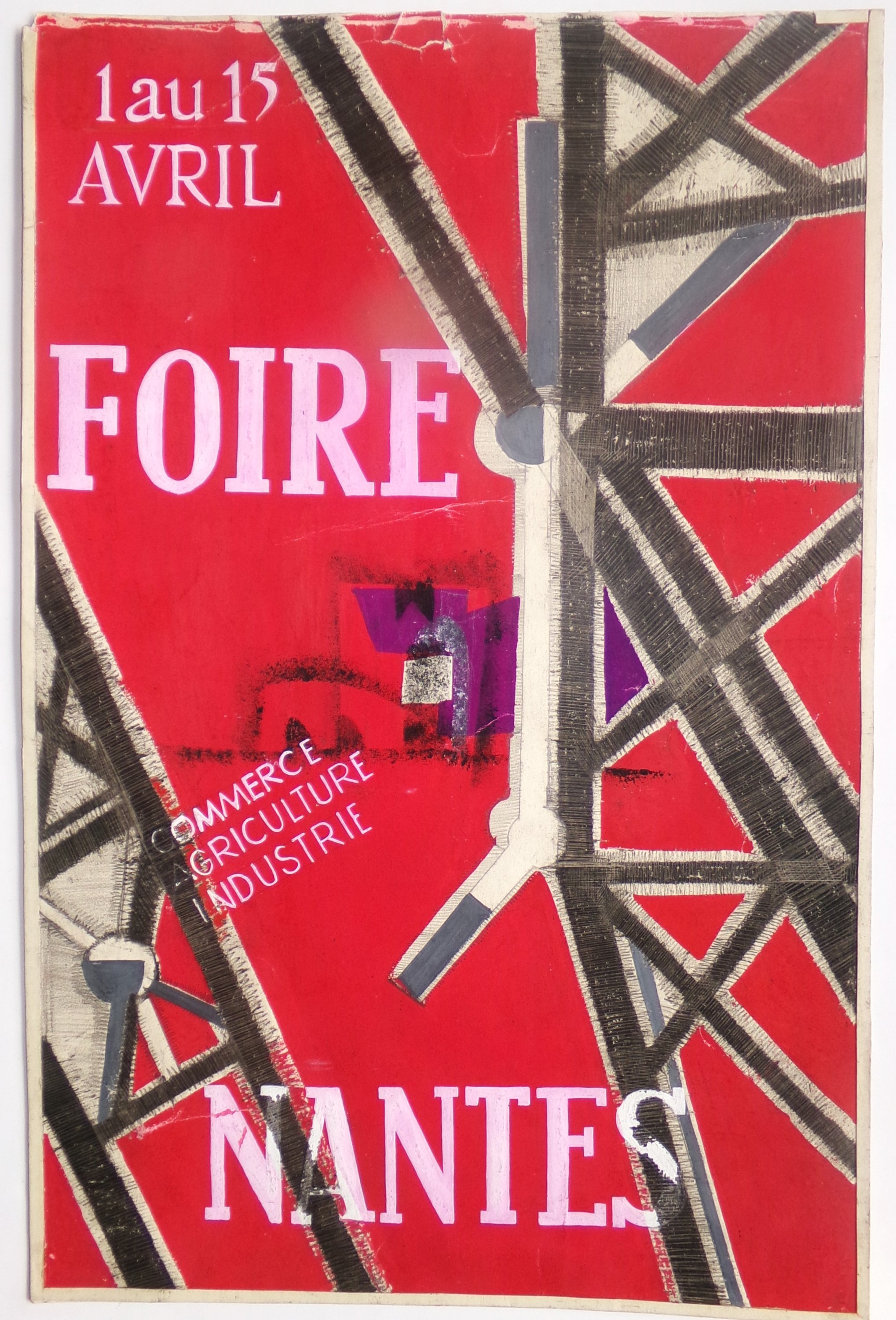 « 1 au 15 avril / Foire / Nantes », maquette d’affiche dessinée et peinte pour annoncer la foire-exposition de Nantes, 51 x 33 cm ;