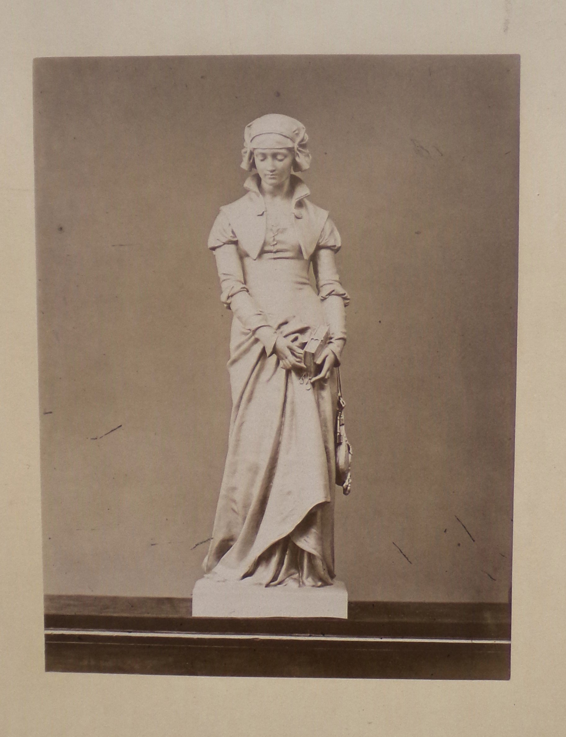 3 vues de statues en marbre sculptées par Eugène-Antoine Aizelin dont « Marguerite » et « Mignon », contrecollées sur carton fort, 26,5 x 20 cm ;