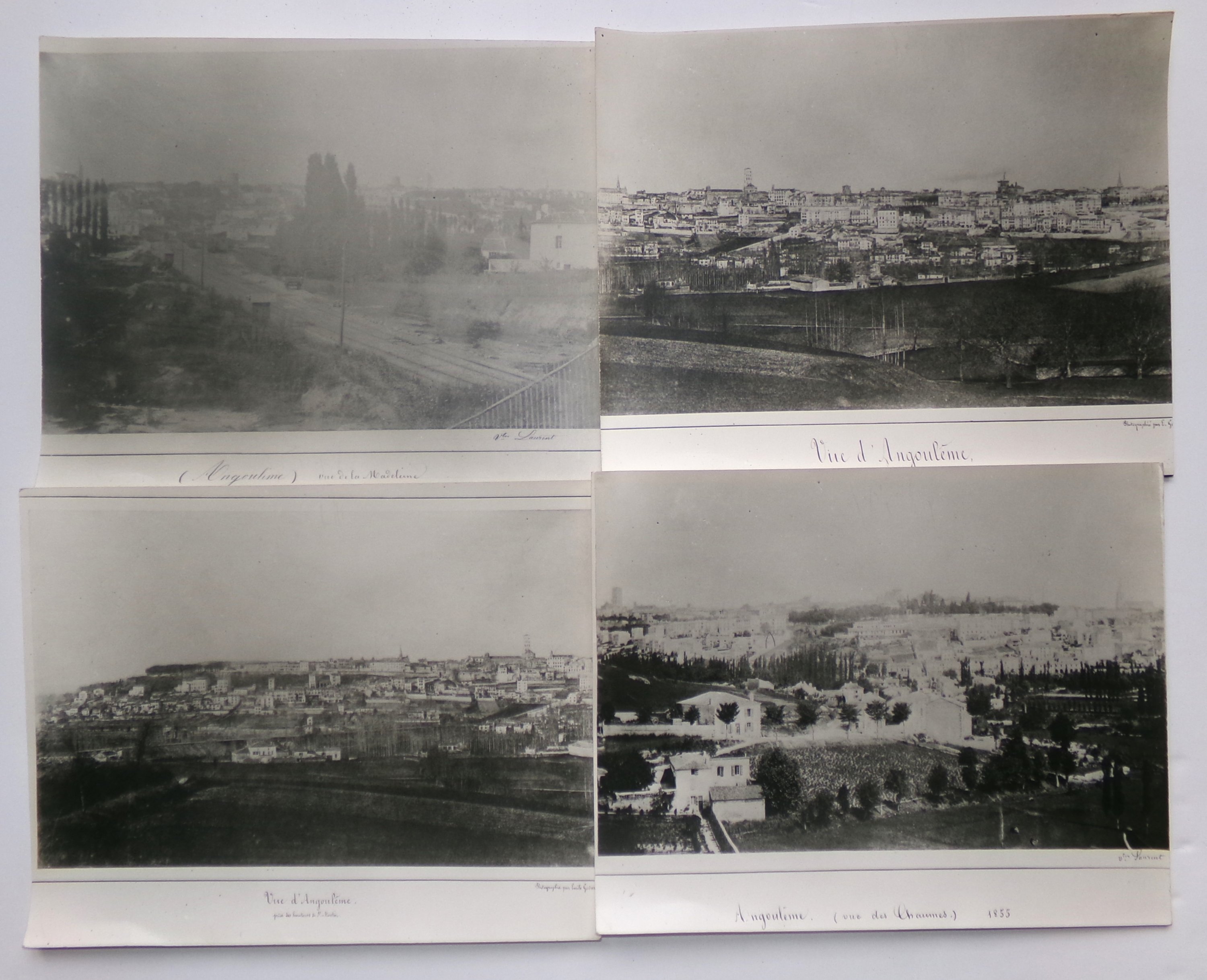 4 reproductions photographiques de vues d’Angoulême prises par Emile Godard et Victor Laurent vers 1855, 24 x 29,5 cm.
